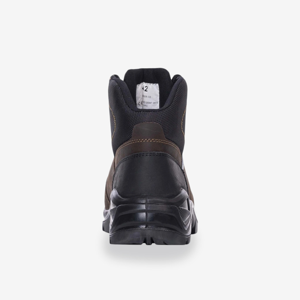 Vízhatlan kialakítással rendelkező nubuk bőr felső rész. A nagyobb ellenállóképesség érdekében minden elemet dupla varrásokkal erősítettek meg. Ergonomikusan párnázott szártető és nyelvrész, mely megfelelő komfortérzetet biztosít, akár egész napos munkavégzés közben.