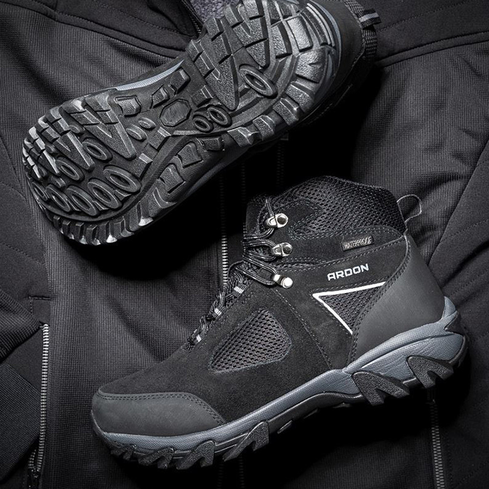Modern megjelnésű Ardon túrabakancs, velúrbőr és szövet felsőrésszel HYDROGUARD membránnal, és kiemelkedő kényelmet nyújtó anatómiai talpbetéttel a hosszabb túrákhoz.