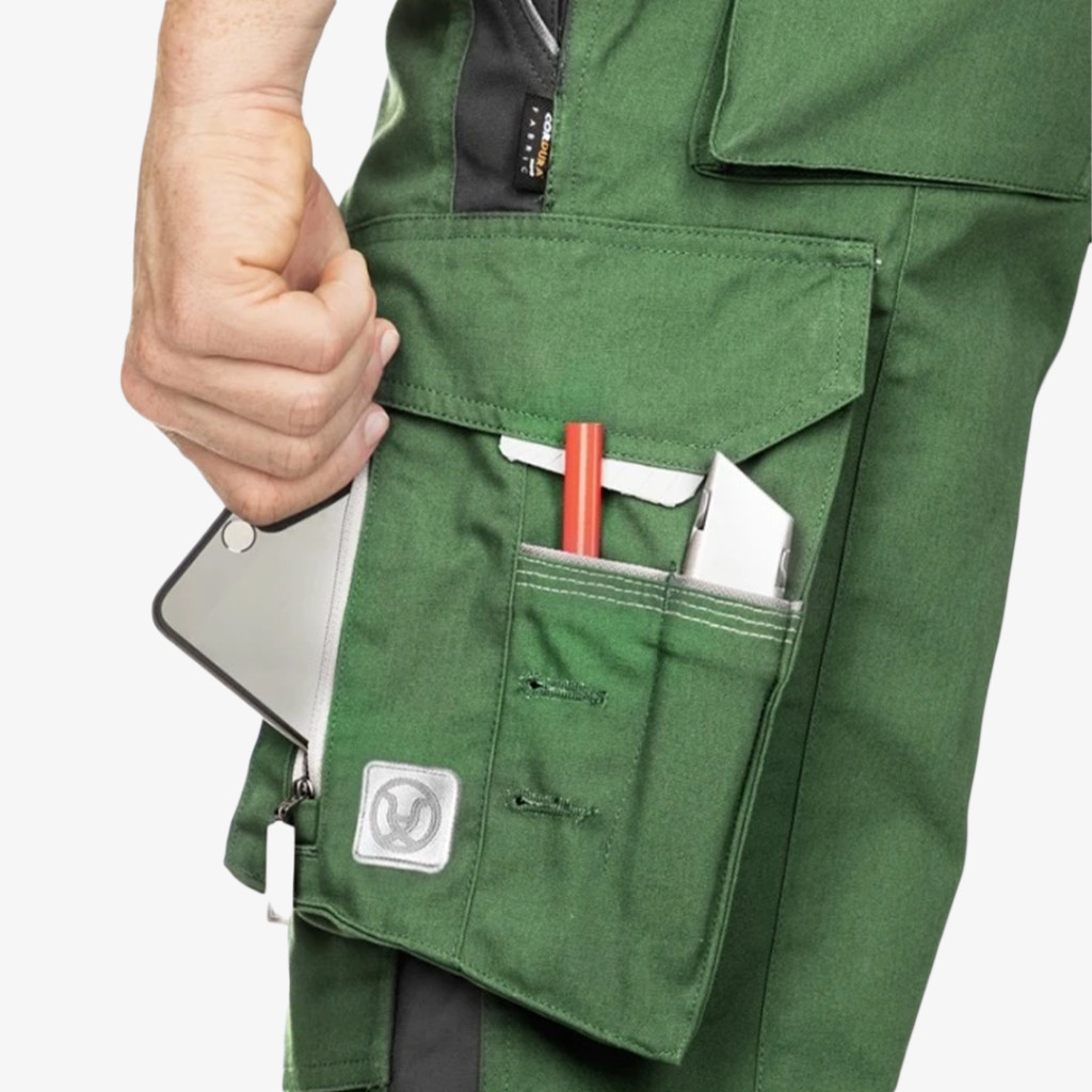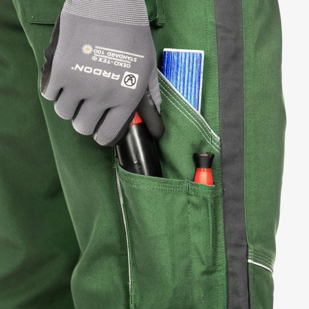 Cordura anyaggal erősített, közepesen vastag Ardon munkásnadrág, kényelmes kialakítással és praktikus, többcélú tárolózsebekkel.