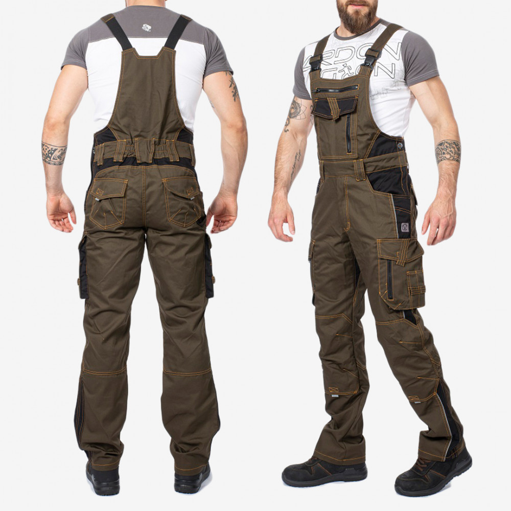Vastag és strapabíró alapanyagból készült kantáros nadrág. Modern szabásának és a rengeteg praktikus tárolózsebnek köszönhetően tökéletes választás minden szakembernek.