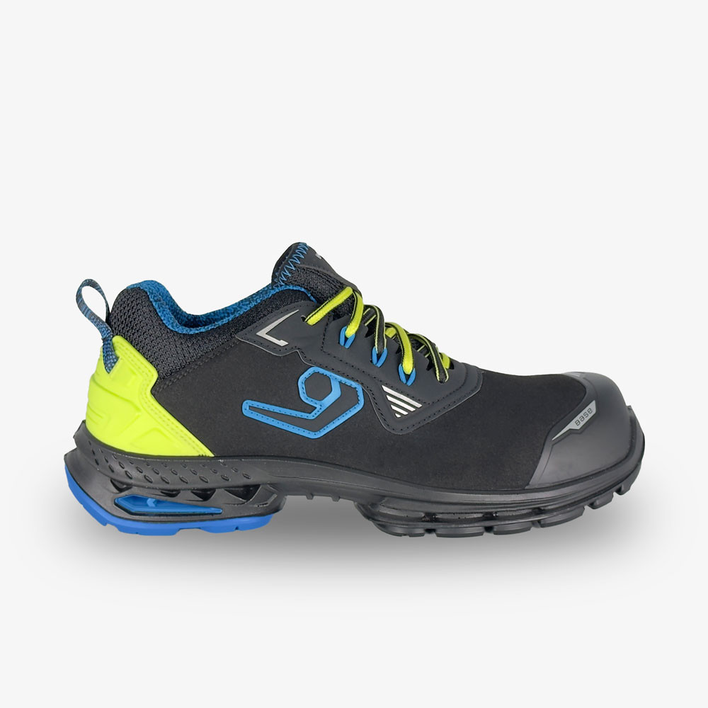 A Base Athen munkavédelmi cipő kiváló védelmet nyújt S3S biztonsági szinttel, ESD védelemmel és acélmentes kompozit orrmerevítővel. Vízlepergető anyagból készült, így ellenáll a nedvességnek, a csúszásmentes talp pedig biztonságos tapadást biztosít.