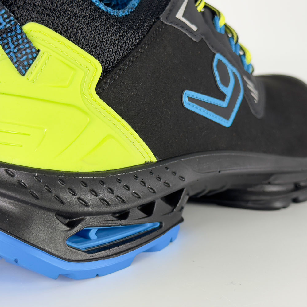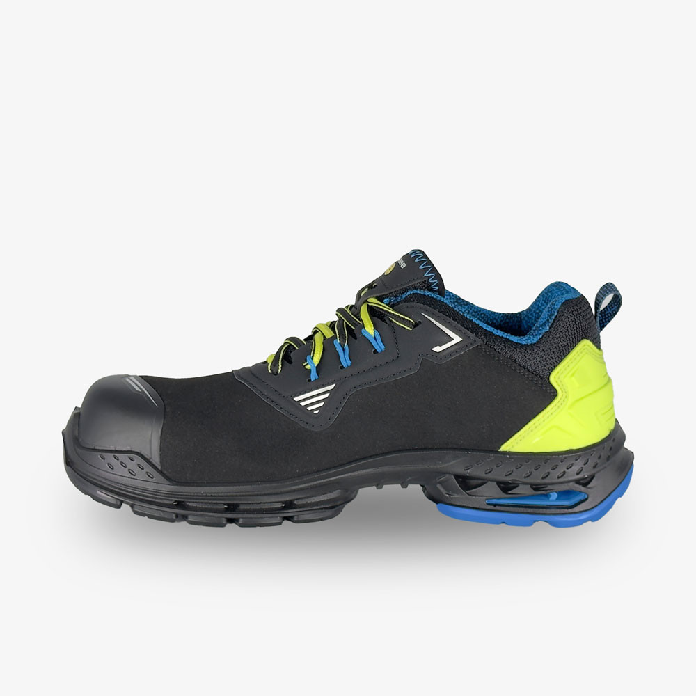 A cipő felső része minőségi, kopásálló mikroszálas bőrből készült Az orr- és sarokrészt további kopásálló borítással látták el a hosszabb élettartam érdekében. Az ergonomikusan párnázott nyelv és szártető megfelelő komfortérzetetet biztosít, akár egész napos munkavégzés során is, míg a textil fűzővezetők optimális tartást garantálnak. A lábbeli oldalain fényvisszaverő elemek találhatóak a fokozott láthatóságért.