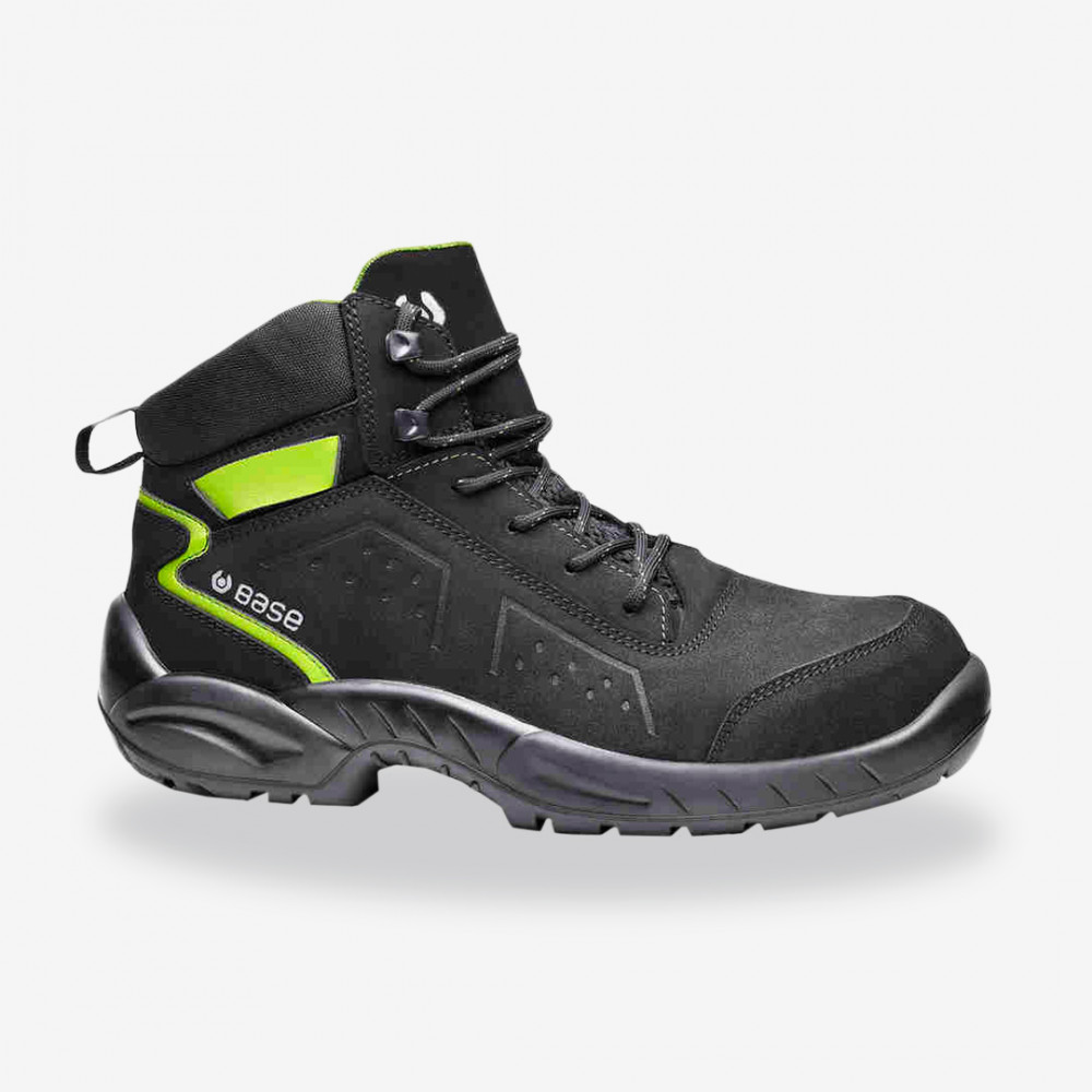 Nubuk hatású mikroszálas bőrből készült, acél orrmerevítő és kevlár talplemez védelemmel ellátott Base munkavédelmi bakancs. Kifejezetten ajánlott a logisztikában, építőiparban, könnyűiparban és mezőgazdaságban dolgozók számára.
