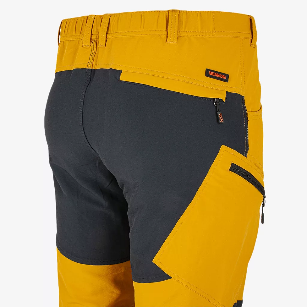 Modern szabású, praktikus 2in1 kialakítású Bennon munkaruha deréknadrág, számos praktikus zsebbel. Ötletes megoldása révén rövidnafrággá is alakítható.