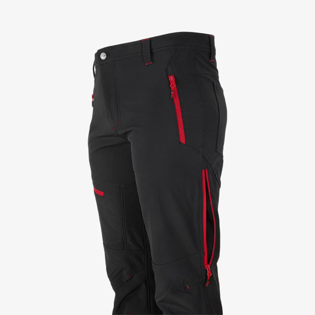 Modern megjelenésű, kényelmes és rugalmas kialakítású Bennon munkaruha deréknadrág, számos praktikus zsebbel, víz- és széllálló softshell anyagból. Szabadidős tevékenységekhez is ideális választás.