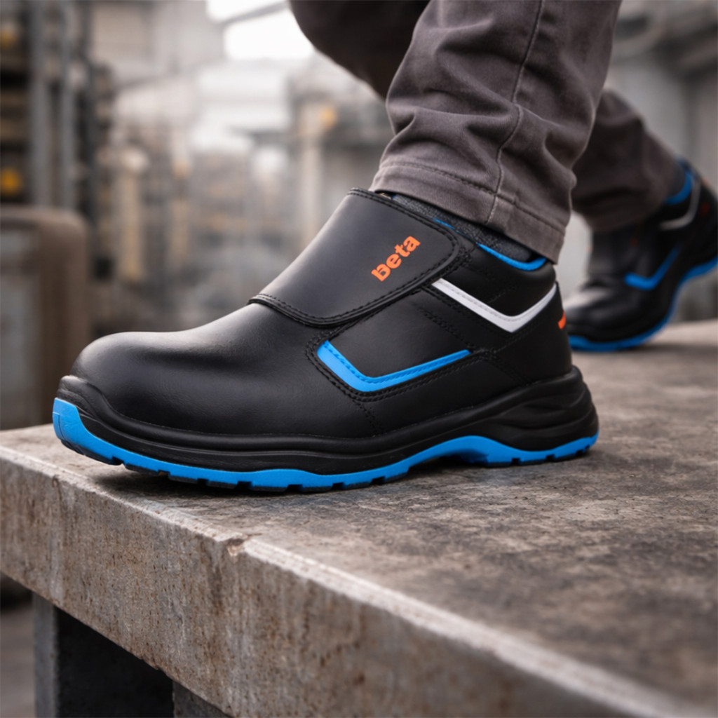 Vízlepergető bőr felsőrésszel készülő, Beta hegesztő bakancs, kompozit orr- és talpátszúrás védelemmel. Antisztatikus, csúszásmentes kialakítású, olajoknak és kontakthőnek is ellenálló talpszerkezettel.