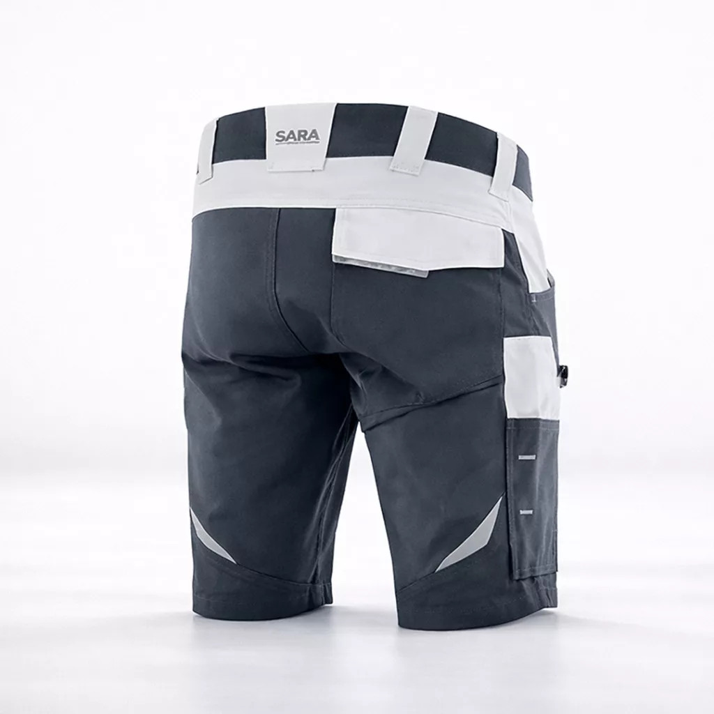 Karcsúsított szabású, kényelmes kevertszálas anyagból készülő Sara munkaruha rövidnadrágból, 5db pamut alapanyagú Malfini pólóból és ultrakönnyű Portwest védőszemüvegből álló munkaruha szett.