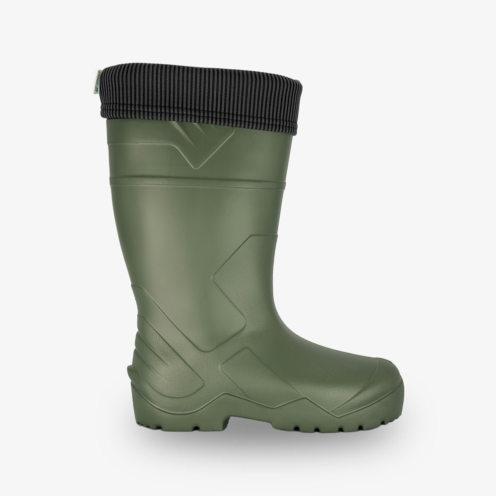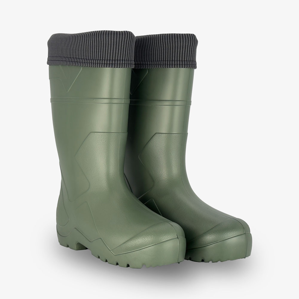 A felső rész minőségi EVA alapanyagból készül hosszúszárú kialakítással, amely könnyű súlya mellett minden helyzetben kiemelkedő mozgásszabadságot biztosít. Alkalmazkodik a járás stílusához és megfelelő kényelmet nyújt. A csizma teljes egészében vízhatlan kivitelű.