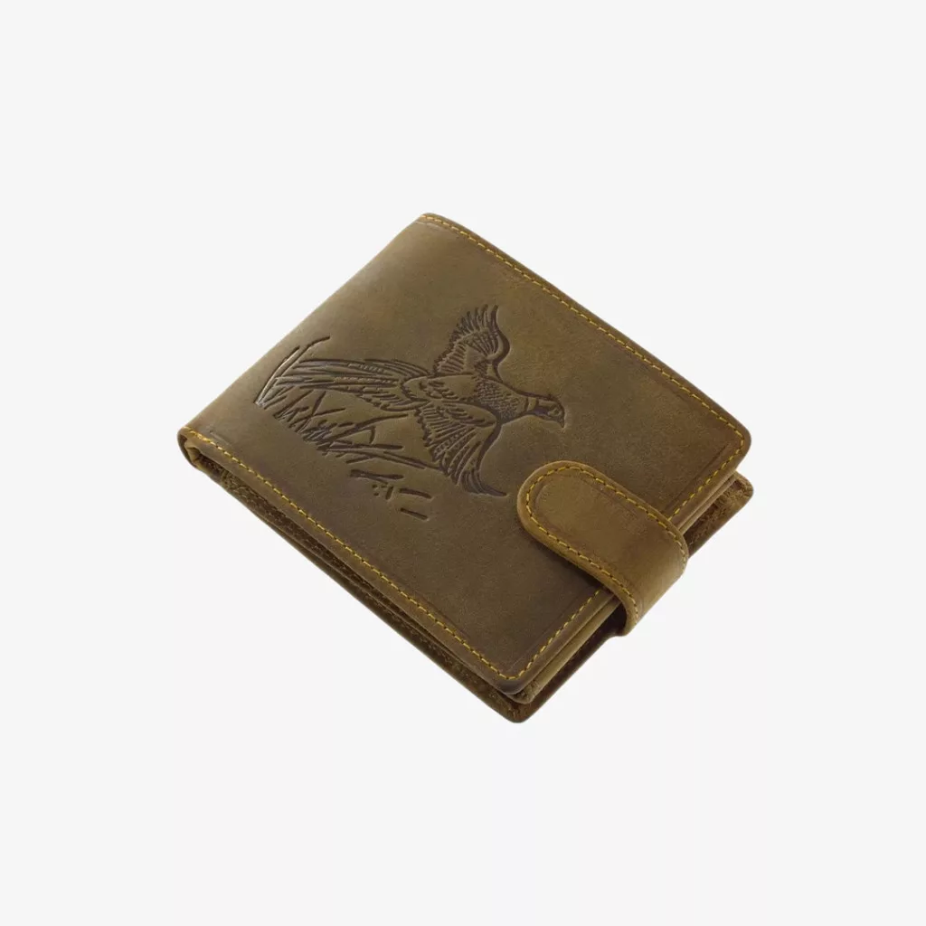 Minőségi bőrből készült, stílusos megjelenésű vadász pénztárca számos praktikus rekesszel, és többféle vadászmotívummal.