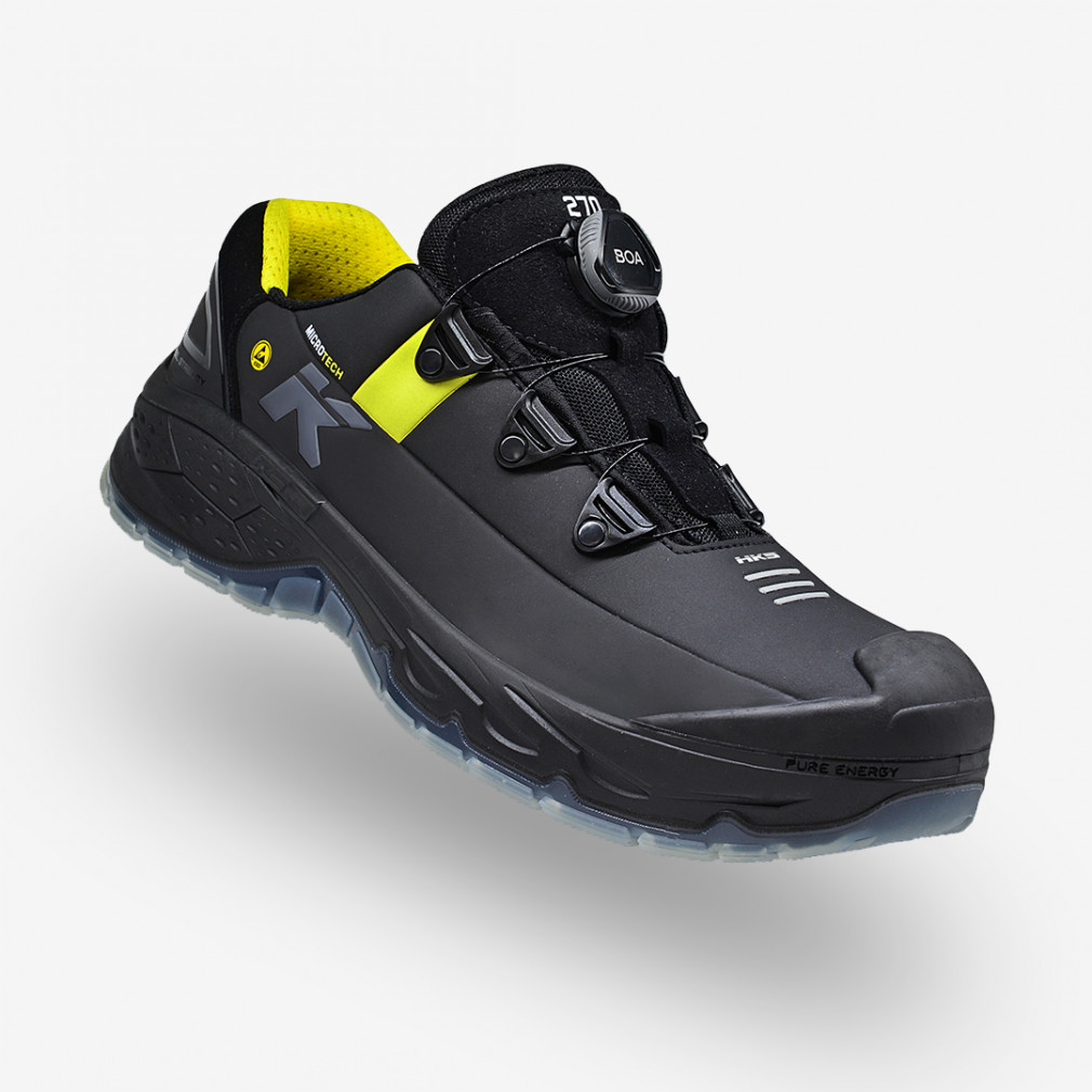 Kiemelkedő rugalmasságot és kényelmet biztosító, prémium minőségű HKS munkavédelmi cipő, mely speciális BOA technológiával készült fűzővezetőkkel rendelkezik.