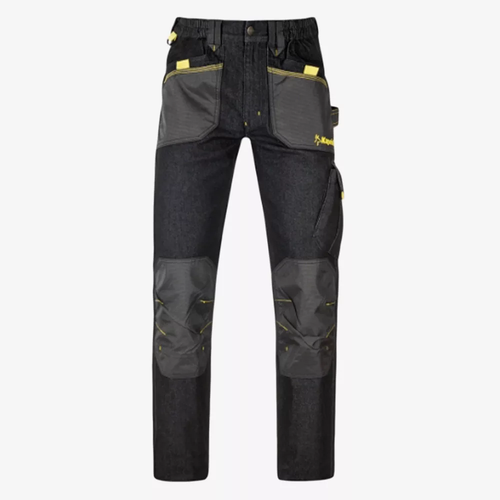 Strapabíró, magas kopásállóságú farmer anyagból készülő Kapriol Slick nadrág. Ötletes tárolózsebekkel és funkcionális megoldásokkal a zavartalan munkavégzés érdekében.