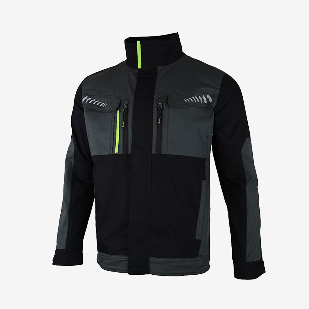 Strapabíró anyagból készült munkaruha kabát, mely rugalmas részekkel rendelkezik a kulcsfontosságú helyeken, így biztosítva a kényelmet és a szabad mozgást munka közben. Praktikus zsebekkel és tartós kialakítással bír, ami ideálissá teszi mindennapi professzionális használatra. Kiváló választás lehet azok számára, akik egy megbízható, mégis kényelmes munkaruházatot keresnek.