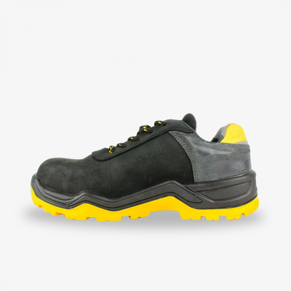 A cipő felső része sima felületű minőségi nubuk bőrből készült. A cipő sarok részén extra kopásálló réteg található. Az ergonomikusan párnázott nyelv és szártető megfelelő komfortérzetet biztosít, akár egész napos munkavégzés során.