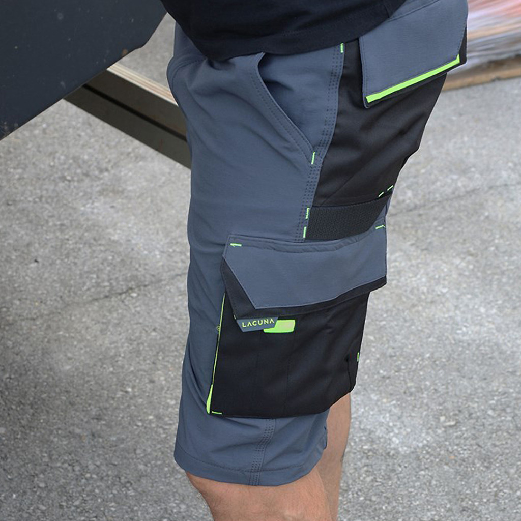 Modern megjelenésű Lacuna rövidnadrág. Innovatív 4-irányú sztreccs anyaga kivételes mozgásszabadságot és kényelmet biztosít egész napra, strapabíró kialakítása pedig garantálja a hosszú élettartamot. Praktikus zsebeivel és időjárásálló tulajdonságaival megbízható társ a mindennapi munkavégzés során.