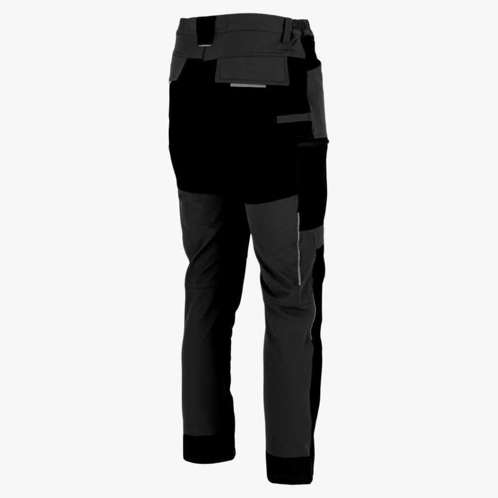 Modern, Slim-Fit szabású, kényelmes és elasztikus anyagból készült LAHTI PRO munkaruha nadrág, erősített varássokkal, sokoldalú tárolózsebekkel, és fényvisszaverő elemekkel.