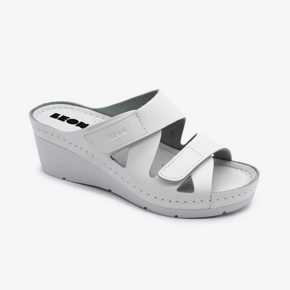 Nyitott kialakítású, minőségi bőr felsőrésszel készülő Leon női papucs, tépőzárral állítható pántokkal, zselés talpbetéttel. Munkahelyre, utcára vagy otthonra egyaránt kiváló választás.