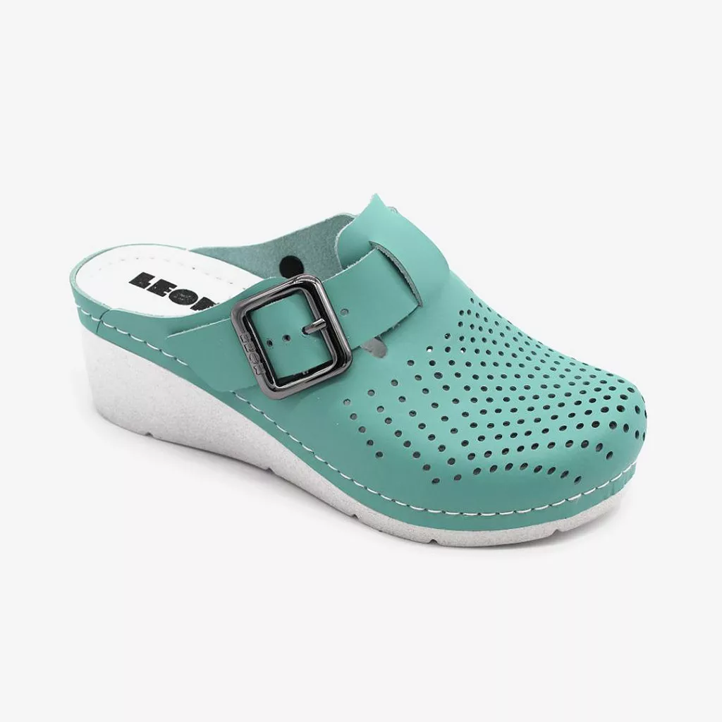 Modern és divatos megjelenésű, kényelmes kialakítású Leon női klumpa, kiváló szellőzést biztosító bőr felsőrésszel. Kényelmes kialakítású, zselés, bőr talpbetéttel, és csúszásmentes talppal. Mindennapos utcai használatra is tökéletes választás.
