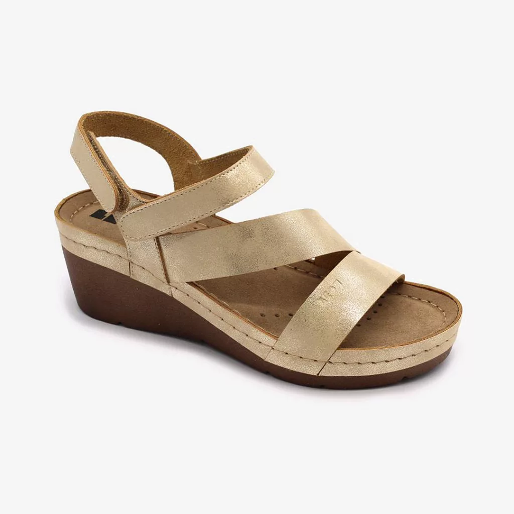 Dekoratív megjelenésű, minőségi bőr felsőrésszel készült, Leon női szandál, tépőzáras állítási lehetőséggel, kényelmes zselés bőr talpbetéttel. Mindennapos otthoni, vagy utcai használatra.