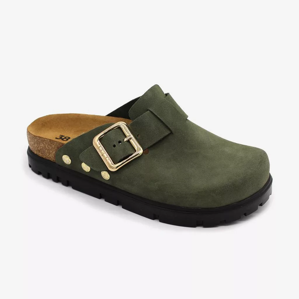 Csatos beállítású Leon női klumpa, modern megjelenéssel, és kényelmes bőr felsőrésszel. Anatómiai parafa talppal, puha velúr bőr talpbetéttel, és csúszásmentes talpszerkezettel. Mindennapos utcai használatra is tökéletes választás.