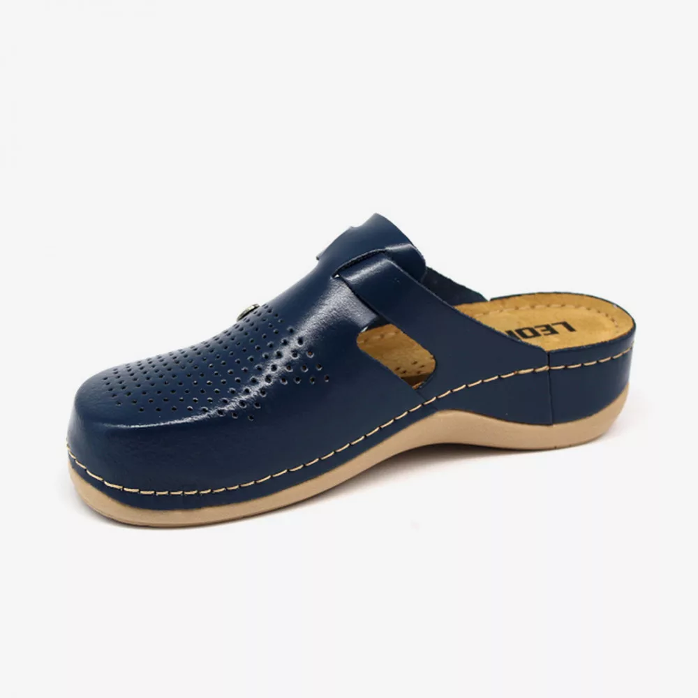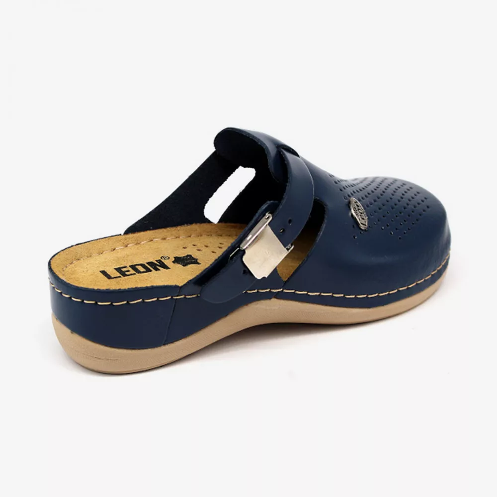 Tartós bőrből készült felső résszel rendelkező Leon munkavédelmi klumpa, megfelelő szellőzést nyújtó kialakítással.