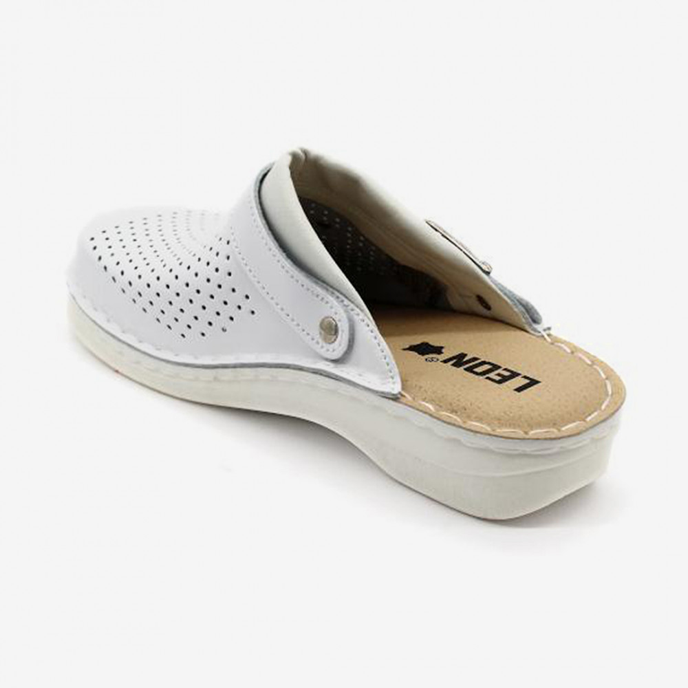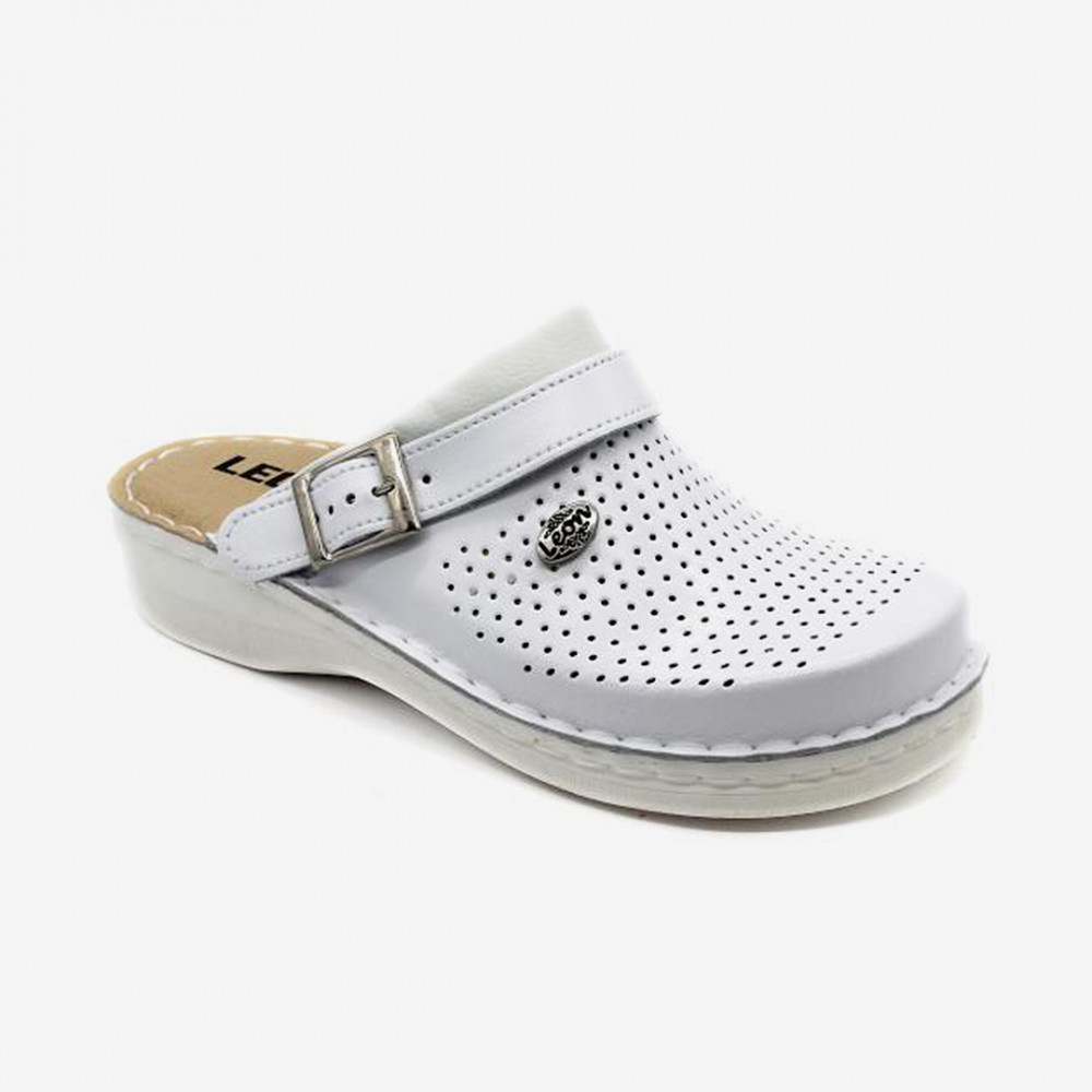Megfelelő tapadást biztosító, csúszásmentes futófelülettel rendelkező Leon munkavédelmi klumpa, mely praktikus kialakításának köszönhetően akár szandálként is használható.