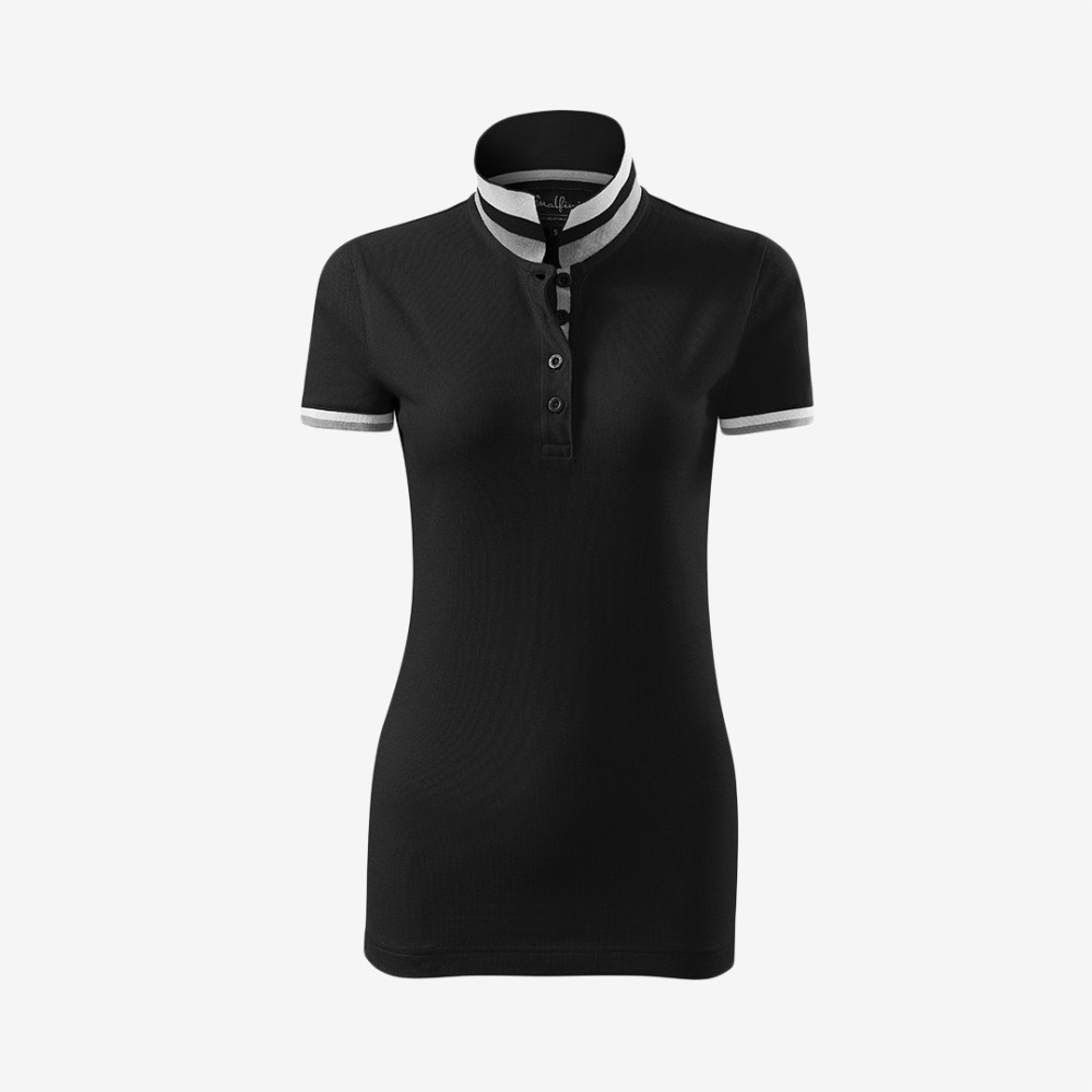 Divatos megjelenésű, galléros Malfini női póló, szűkített szabással, kényelmes és puha pamut alapanyagból, a mindennapokra is.