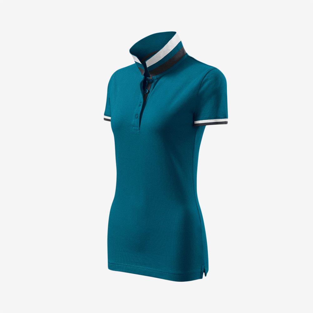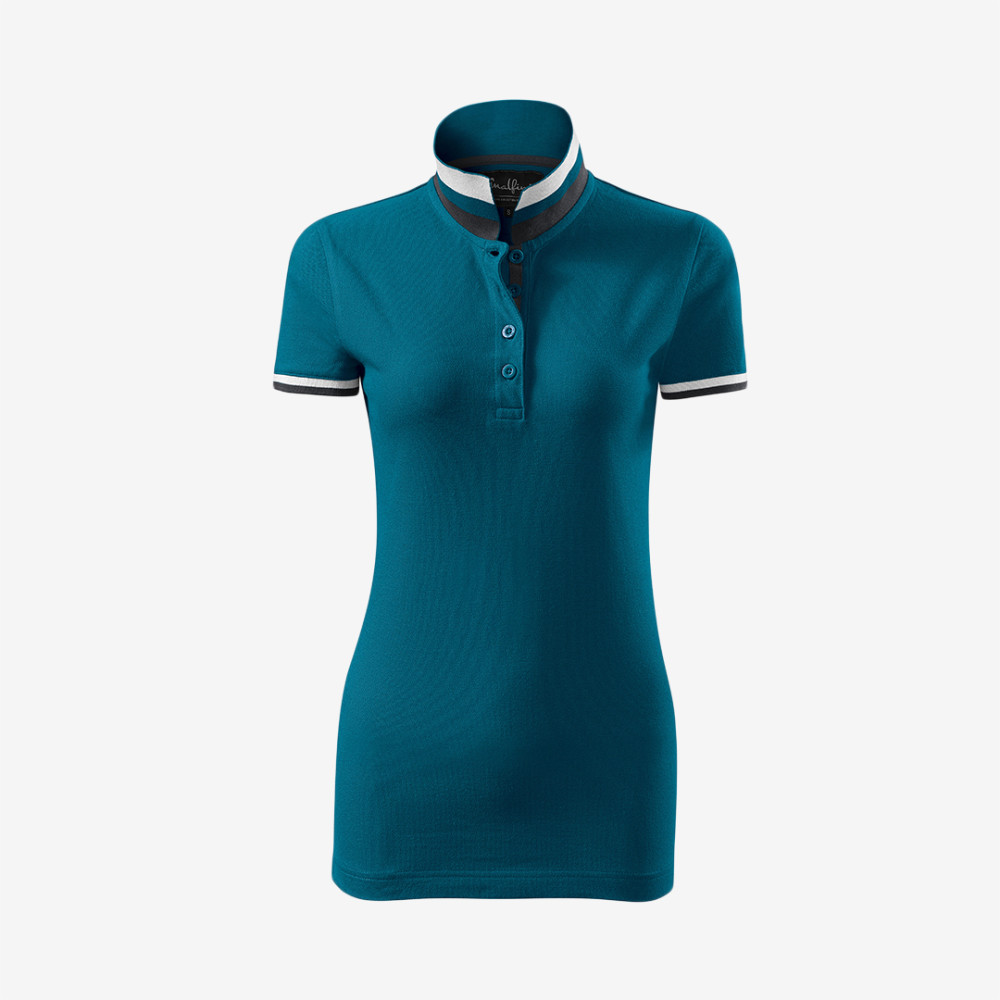Divatos megjelenésű, galléros Malfini női póló, szűkített szabással, kényelmes és puha pamut alapanyagból, a mindennapokra is.