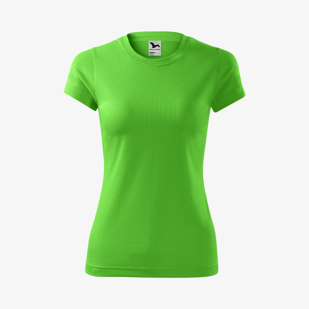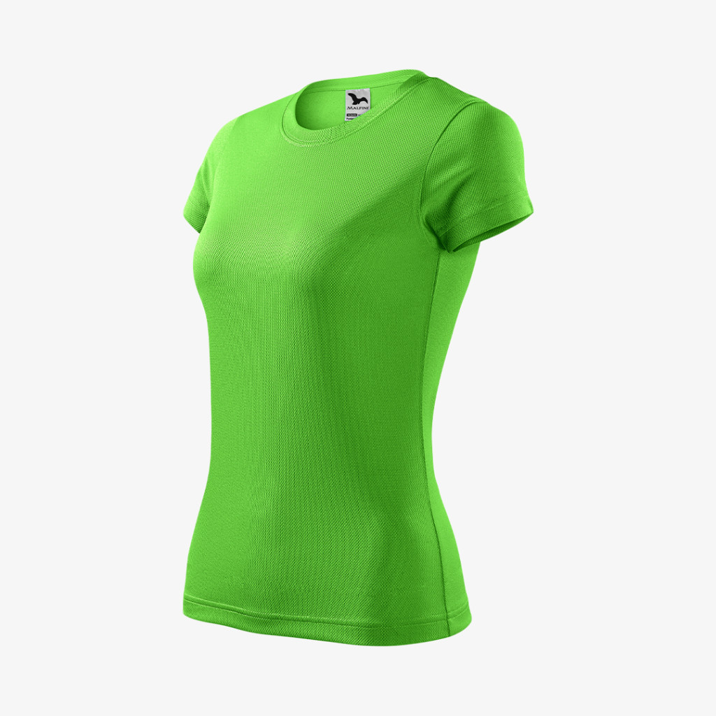 Íves szabással és környak kialakítással rendelkező, nagyon gyorsan száradó poliészter alapanyagú Malfini női póló, amely ideális sporthoz és szabadidős tevékenységekhez.