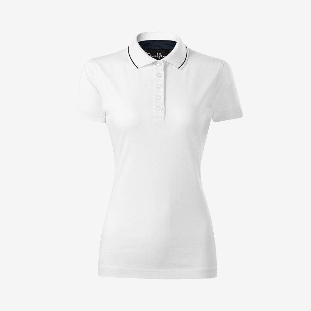 Sportos megjelenést biztosító, szűkített szabású, pamut alapanyagból készült Malfini női galléros póló széles színválasztékban.