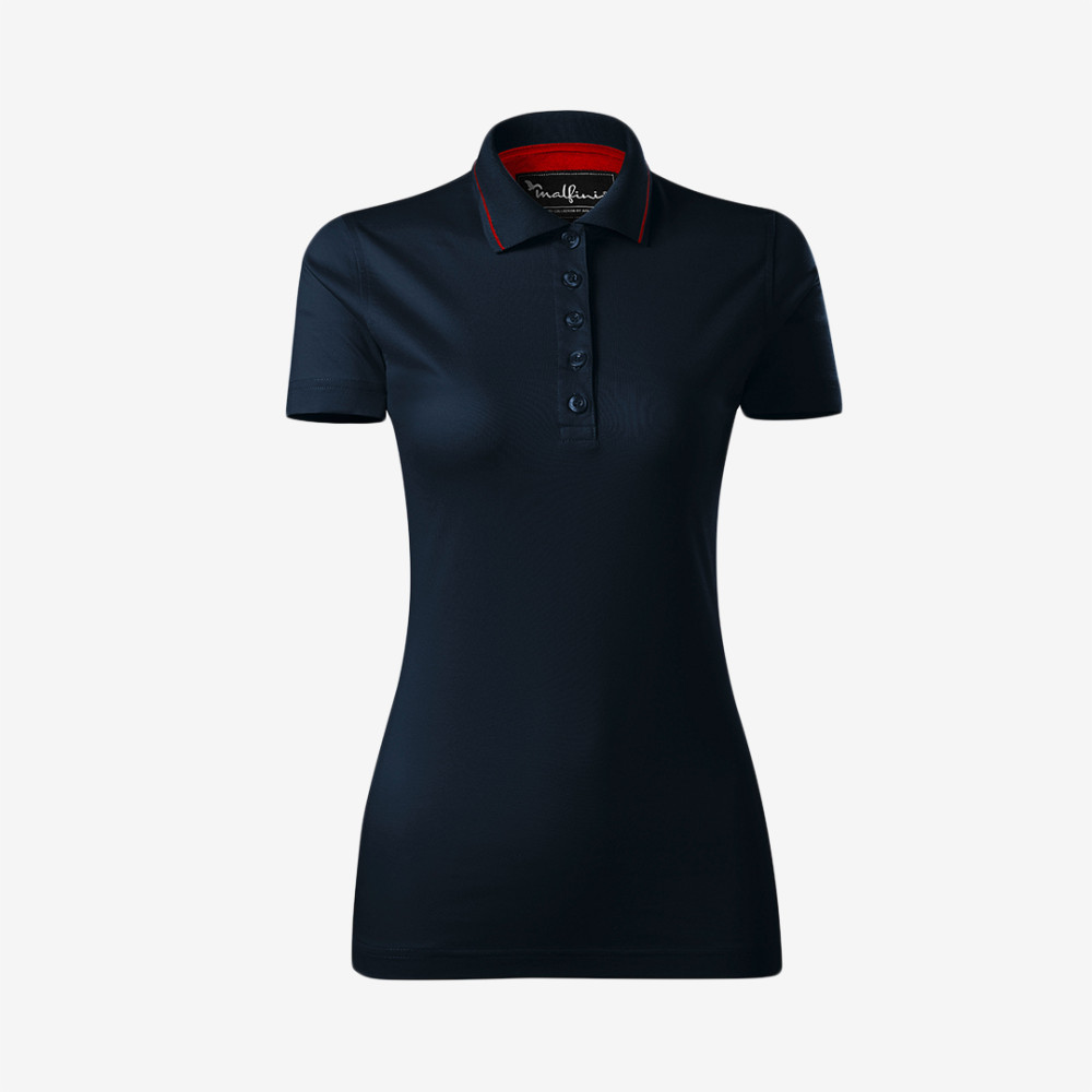 Sportos megjelenést biztosító, szűkített szabású, pamut alapanyagból készült Malfini női galléros póló széles színválasztékban.