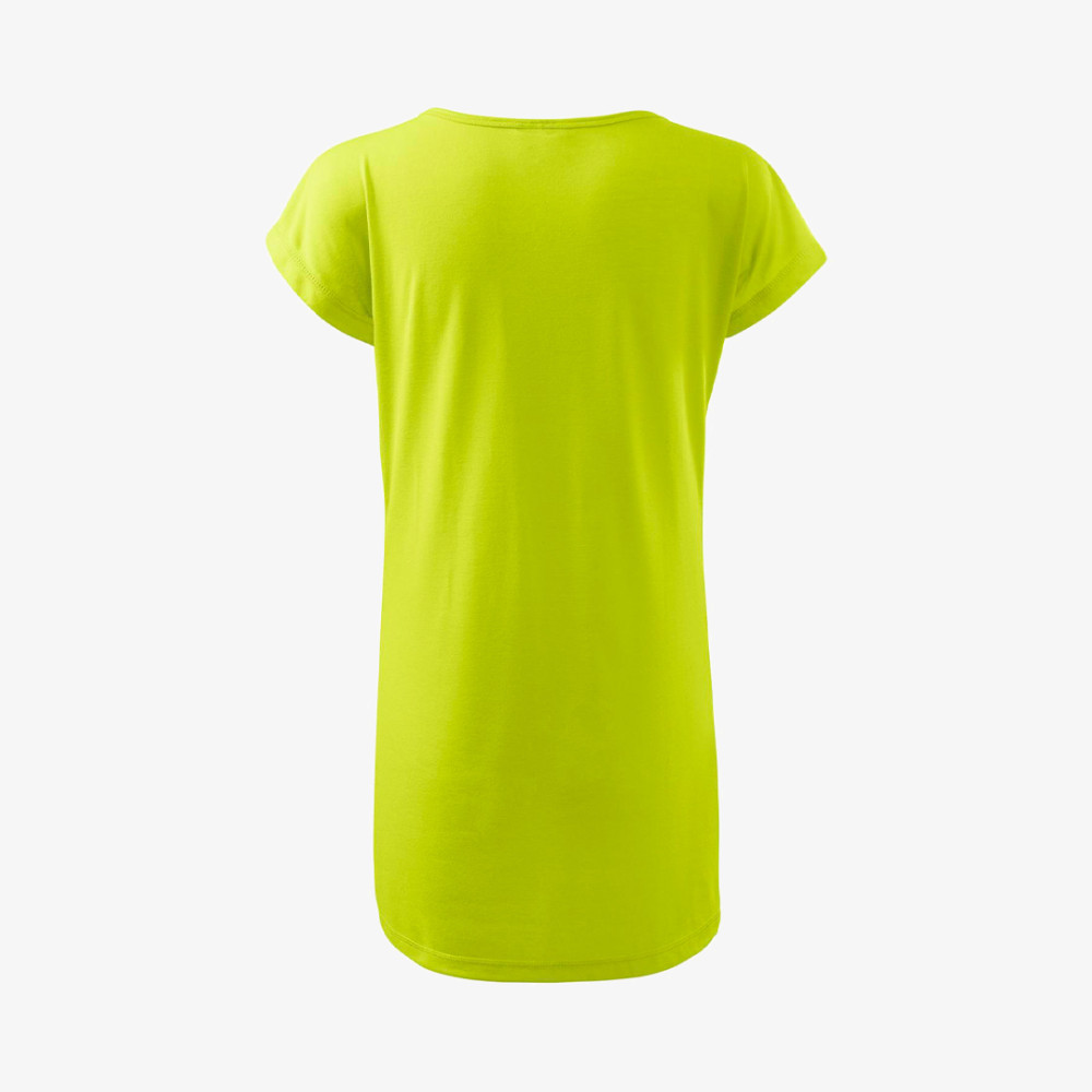 Sportos, modern megjelenésű, kényelmes szabású, kevertszálas anyagból készült női póló, csónak nyakkivágással.