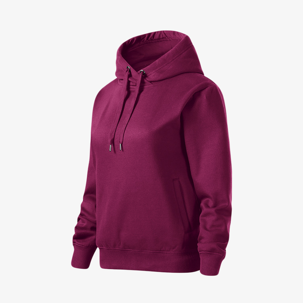 Divatos, sportos megjelenést biztosító női Malfini kapucnis pulóver kényelmes szabással, kenguru zsebekkel. Szabadidős tevékenységekhez is jó választás.