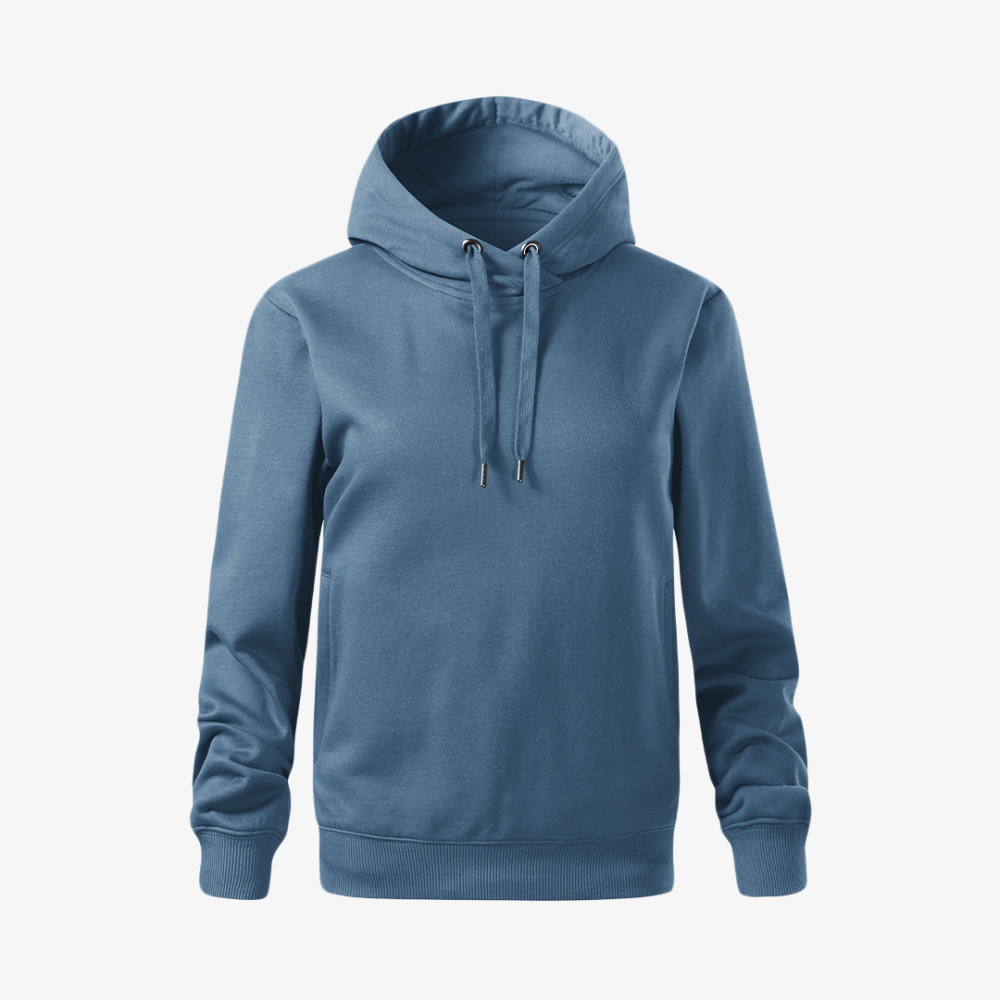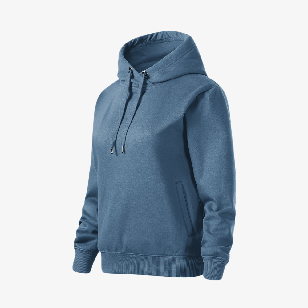 Divatos, sportos megjelenést biztosító női Malfini kapucnis pulóver kényelmes szabással, kenguru zsebekkel. Szabadidős tevékenységekhez is jó választás.
