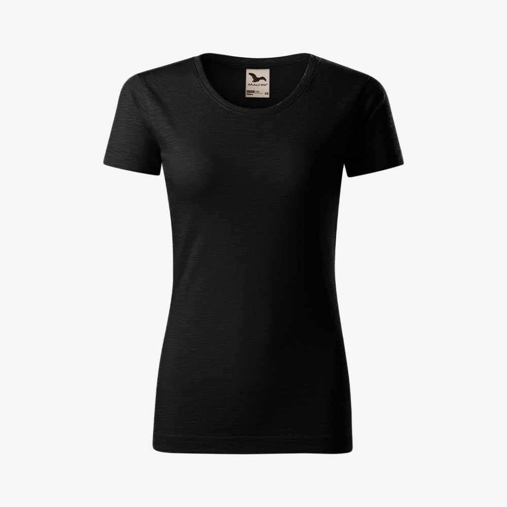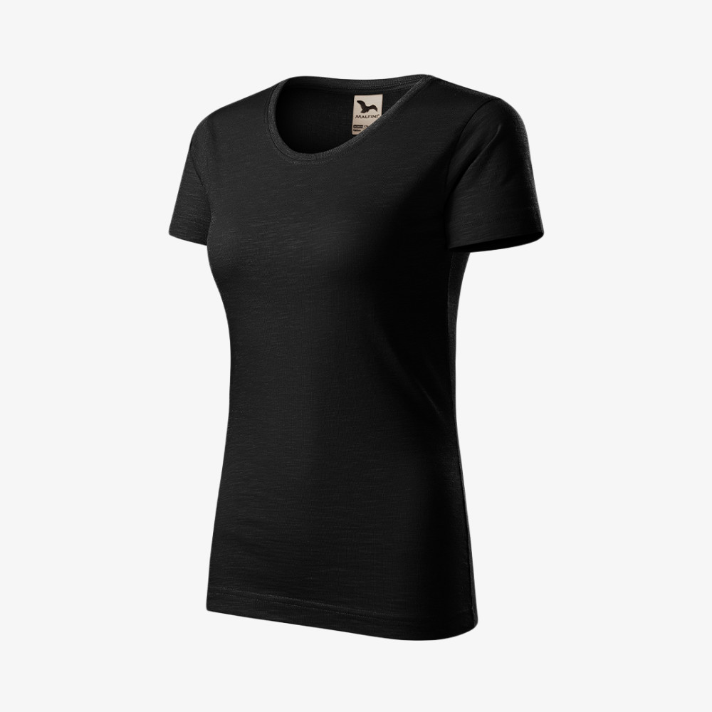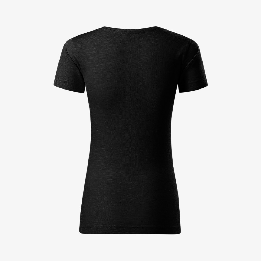 Környak kialakítással és keskeny nyakkivágással rendelkező, rendkívül kényelmes és puha, 100% tanúsított biopamut alapanyagú női póló.