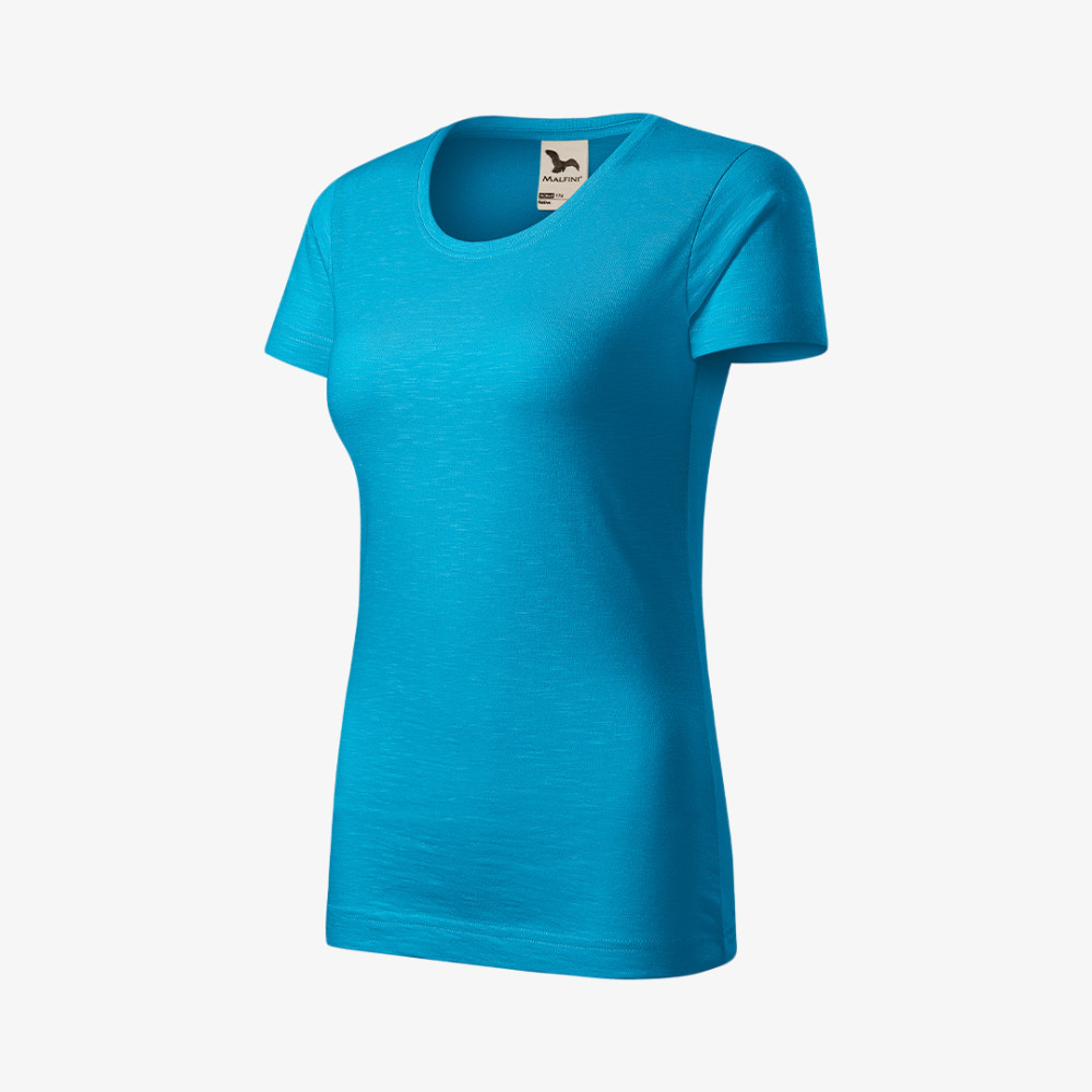 Környak kialakítással és keskeny nyakkivágással rendelkező, rendkívül kényelmes és puha, 100% tanúsított biopamut alapanyagú női póló.
