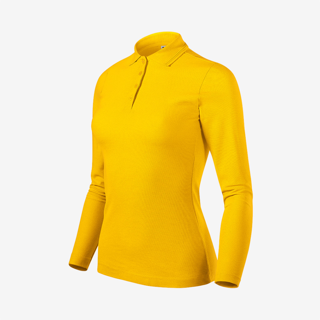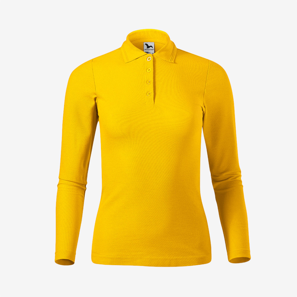 Stílusos, divatos megjelenést nyújtó női Malfini hosszú ujjú galléros póló, kényelmes viseletet biztosító kevertszálas anyagból.