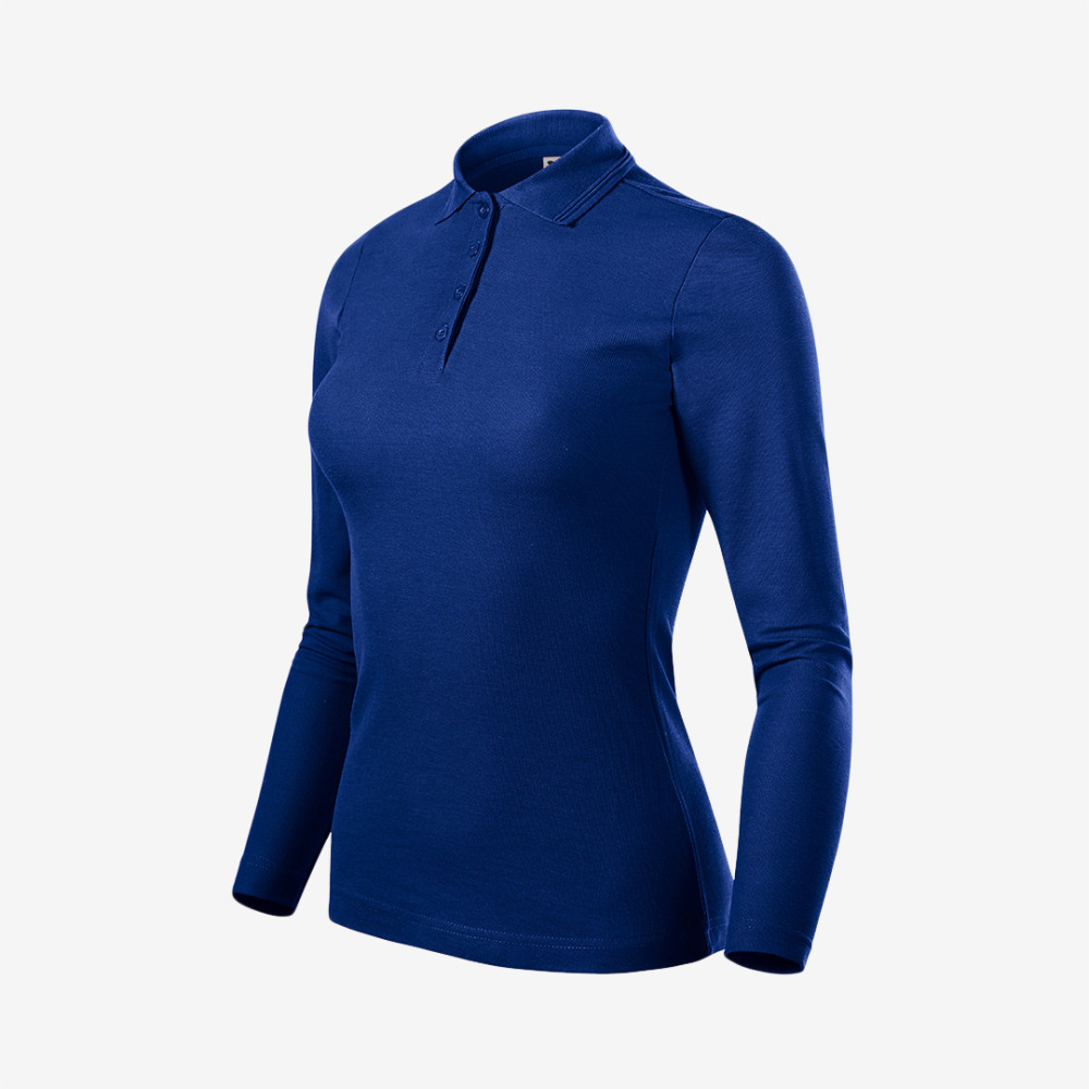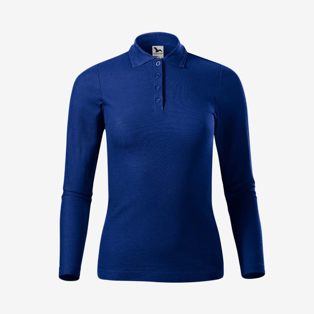 Stílusos, divatos megjelenést nyújtó női Malfini hosszú ujjú galléros póló, kényelmes viseletet biztosító kevertszálas anyagból.