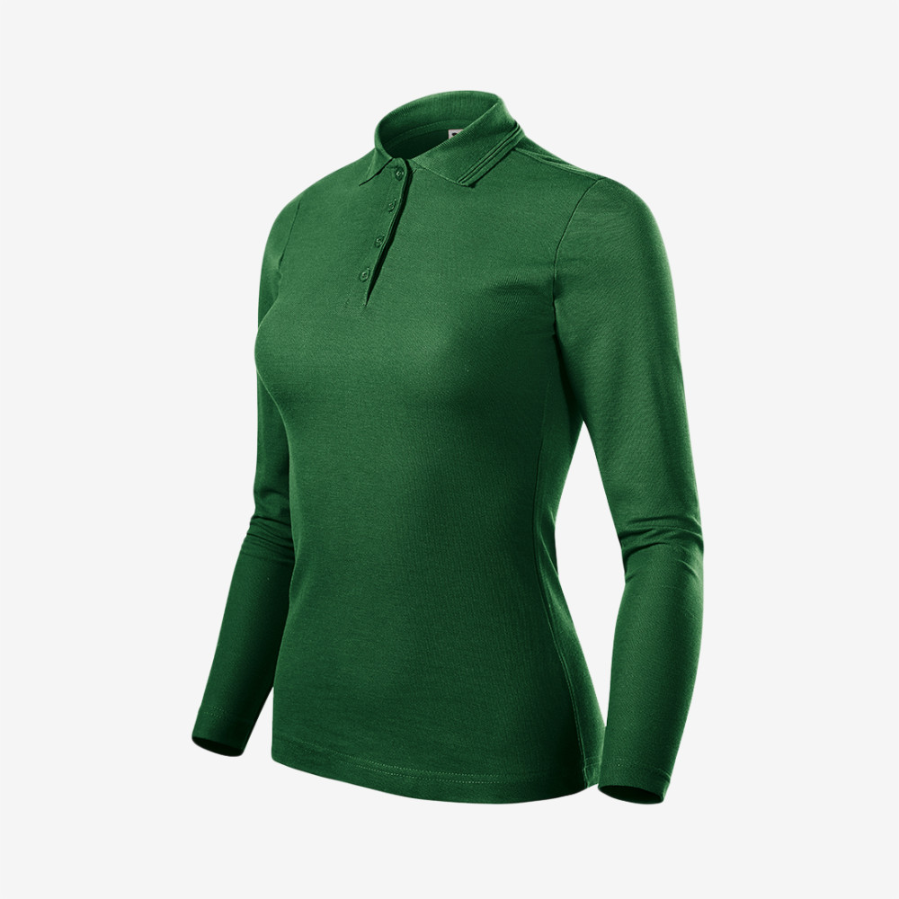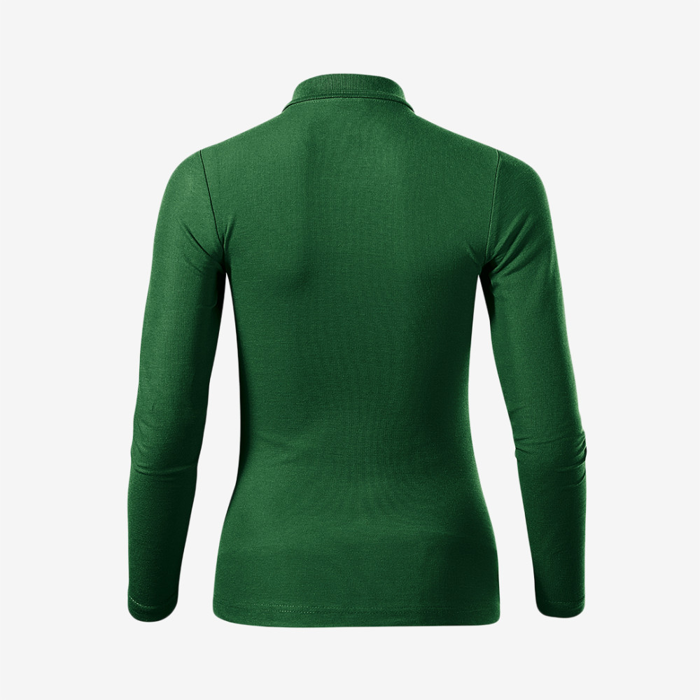 Stílusos, divatos megjelenést nyújtó női Malfini hosszú ujjú galléros póló, kényelmes viseletet biztosító kevertszálas anyagból.
