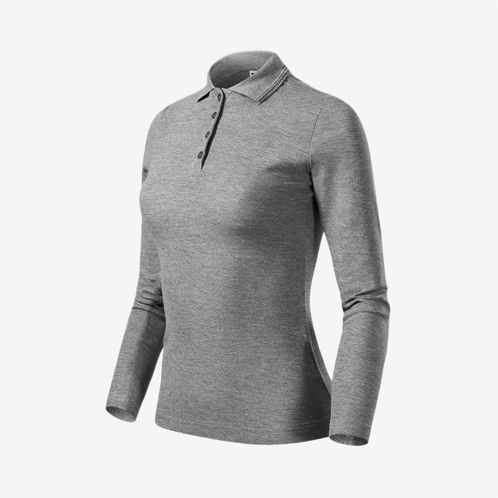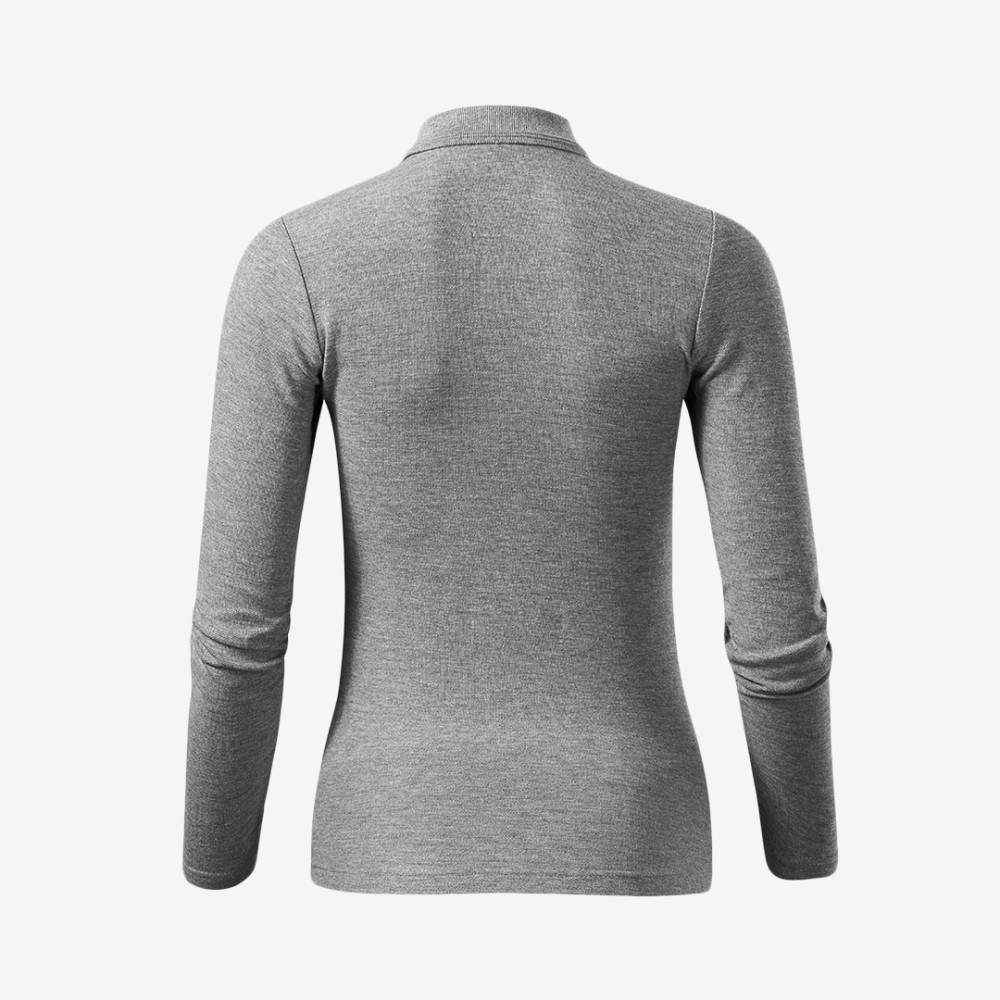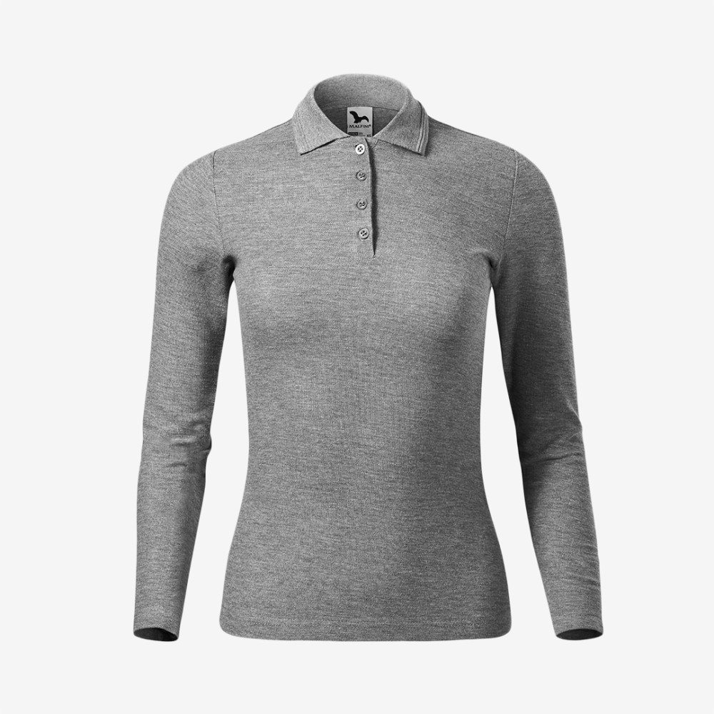 Stílusos, divatos megjelenést nyújtó női Malfini hosszú ujjú galléros póló, kényelmes viseletet biztosító kevertszálas anyagból.