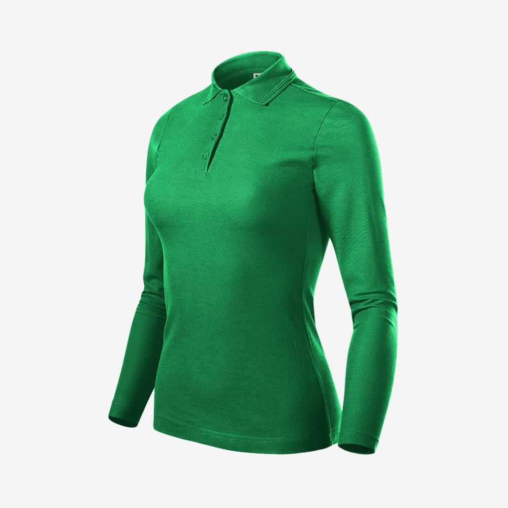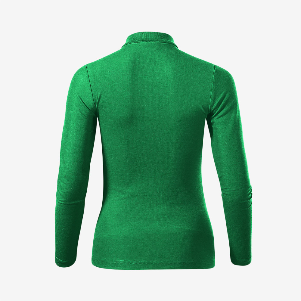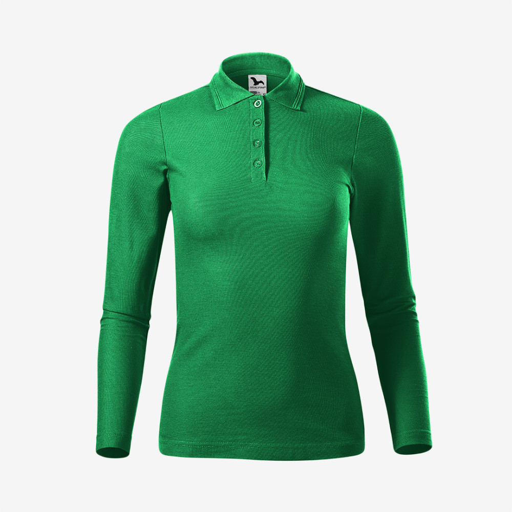 Stílusos, divatos megjelenést nyújtó női Malfini hosszú ujjú galléros póló, kényelmes viseletet biztosító kevertszálas anyagból.