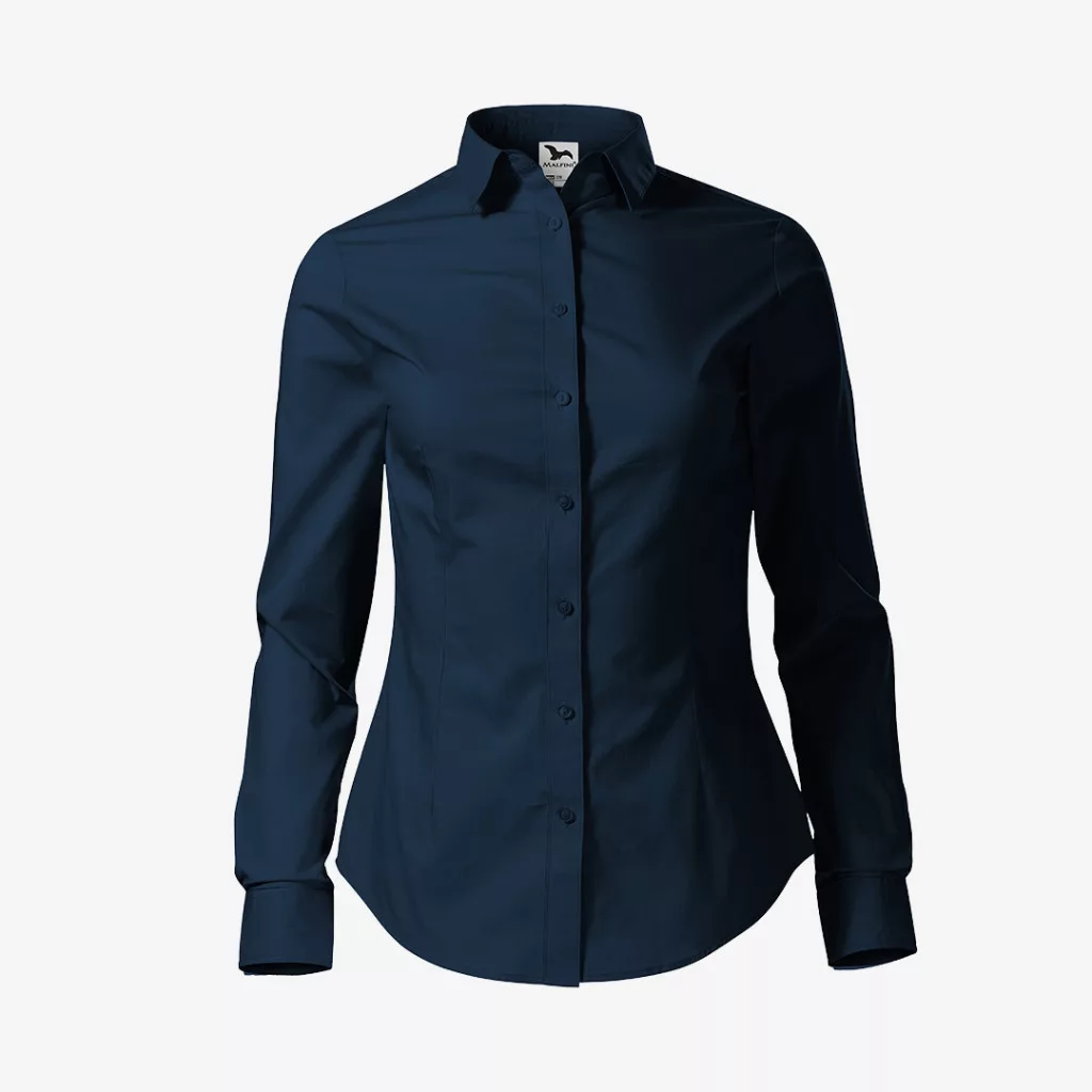 Kényelmes, puha pamut anyagból készült, elegáns megjelenést nyújtó Malfini női ing, divatos enyhén szűkített szabással.
