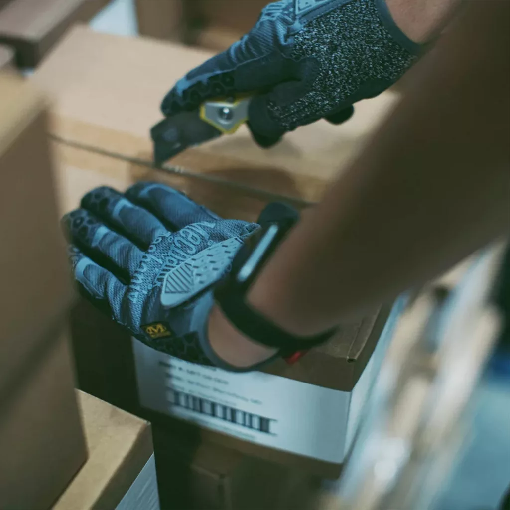 A Mechanix Box Cutter kesztyűt dobozkezeléshez, készletfeltöltéshez és raktári munkákhoz tervezték. A csúszásgátló szilikon fogású tenyérrész lehetővé teszi, hogy kevesebb megerőltető erőfeszítéssel dolgozzon nehéz tárgyak emelése közben.