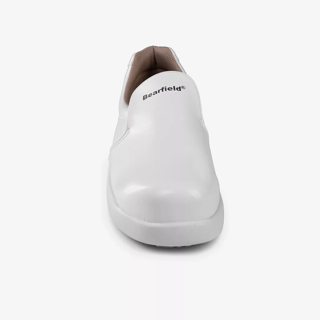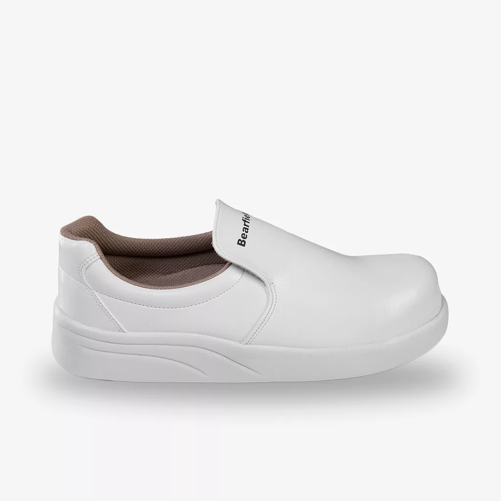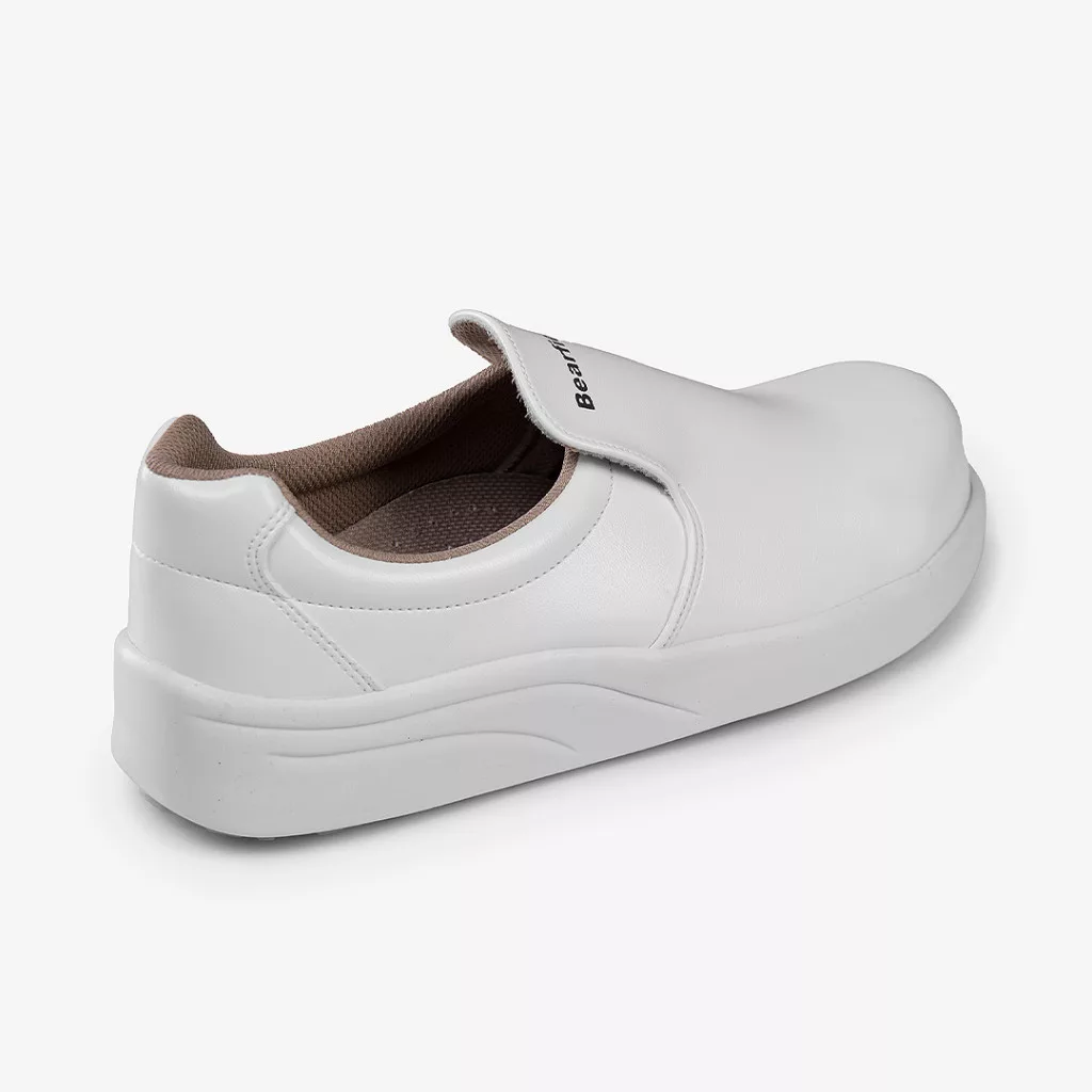 A munkavédelmi cipő felső része speciális, vízhatlan mikroszálas poliuretán bevonatú anyagból készül, fűző nélküli kivitelben. A kialakításának köszönhetően rendkívül könnyen tisztán tartható. A nagyobb igénybevételnek kitett helyeket dupla varással erősítették meg a hosszabb élettartam érdekében