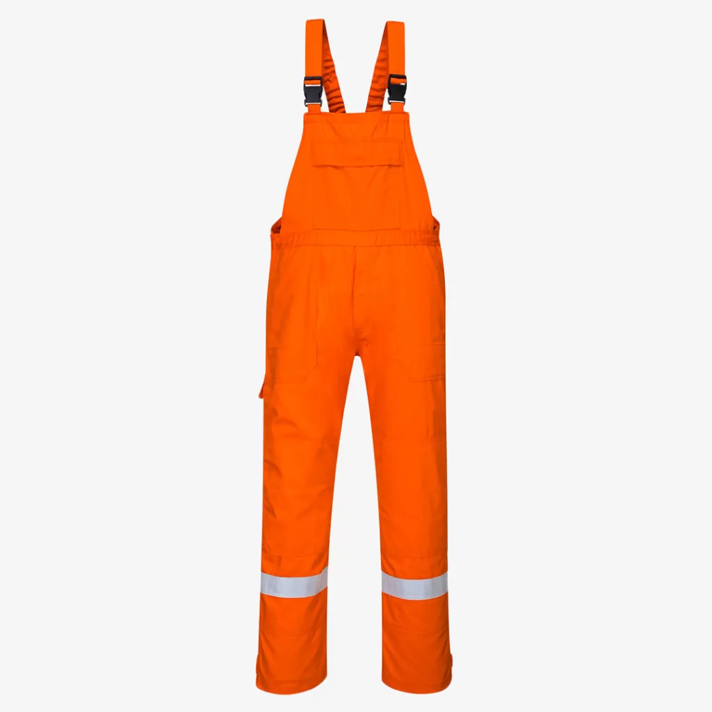 Strapabíró lángálló alapanyagból készülő Portwest kantáros munkavédelmi nadrág, erősített varrásokkal és ipari mosásra is alkalmas jól láthatósági szalagokkal, valamint többfunkciós zsebes kialakítással.