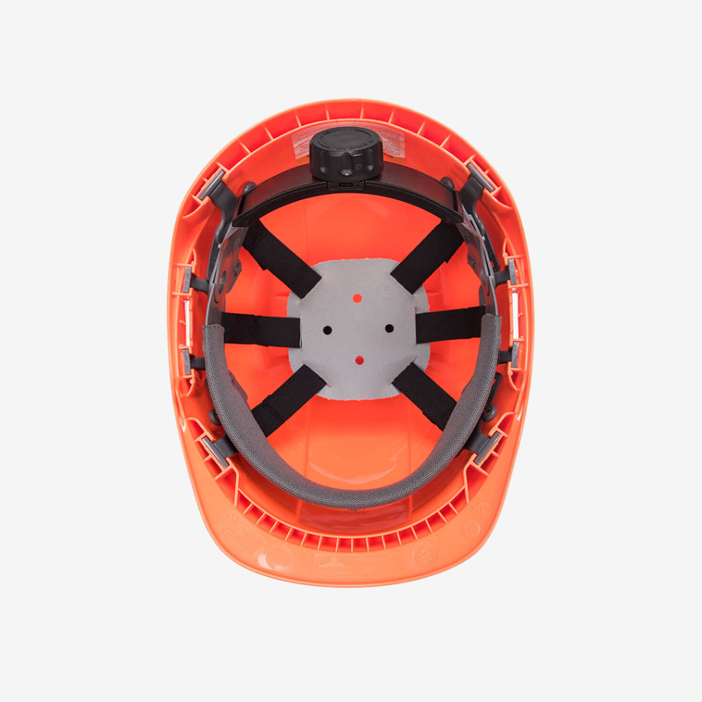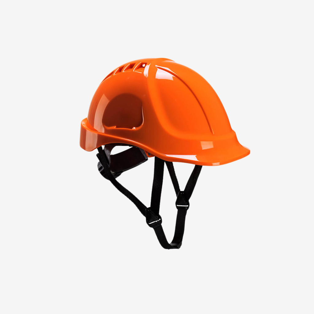 Könnyű súlyú, szellőztetett ABS héjjal ellátott Portwest sisak, pontos textil felfüggesztésű hevederrel, racsnis állítással, Y típusú 4 pontos állszíjjal, többféle szíben.