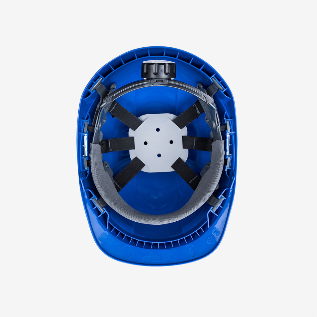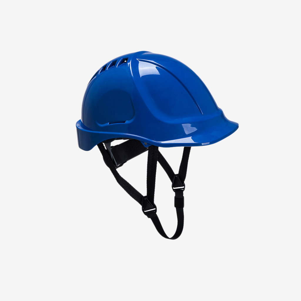 Könnyű súlyú, szellőztetett ABS héjjal ellátott Portwest sisak, pontos textil felfüggesztésű hevederrel, racsnis állítással, Y típusú 4 pontos állszíjjal, többféle szíben.