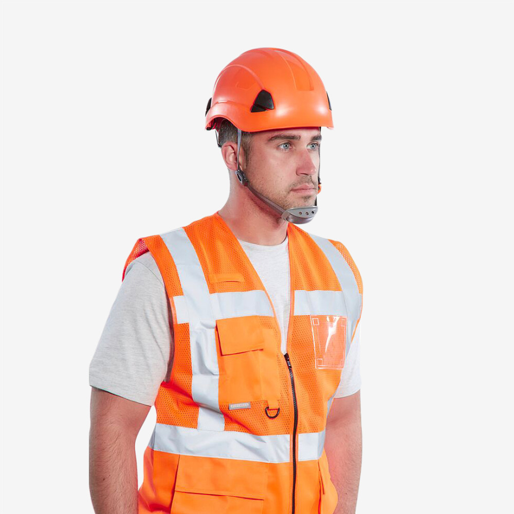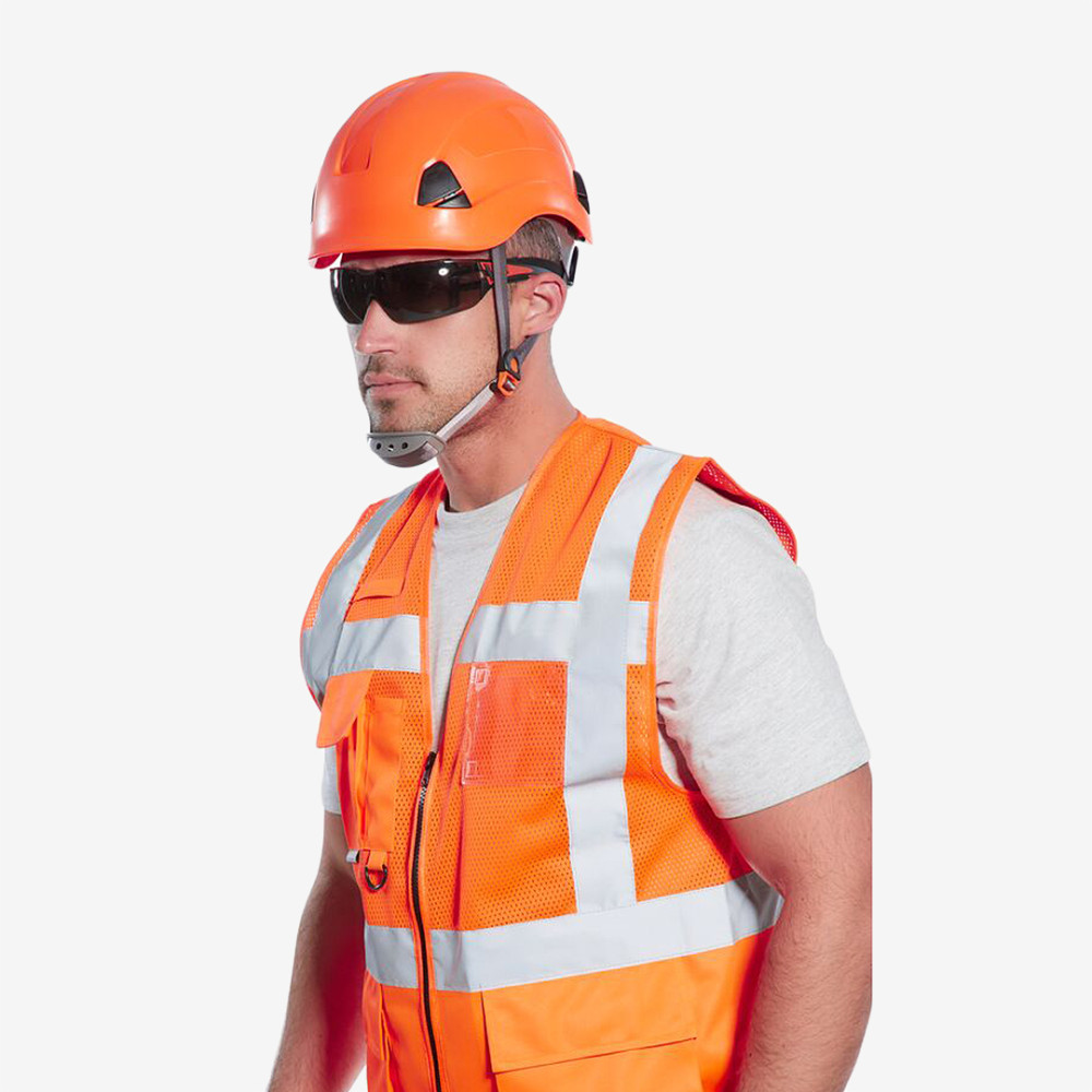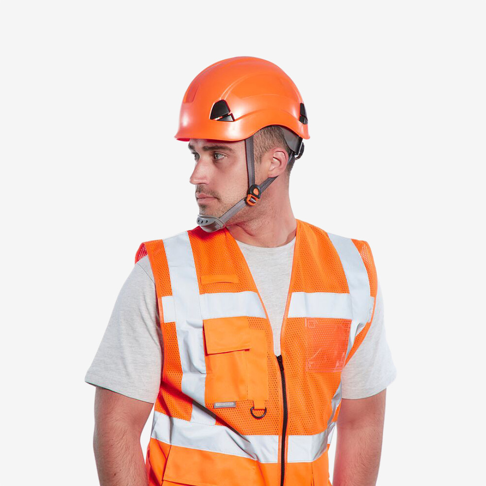 Könnyű és kényelmes, szellőzés nélküli ABS héjjal készült Portwest sisak, 6 pontos textil komfort hevederrel és kerékreteszes állítással, 52-63 cm-es méretben. Elektromos szigeteléssel akár 1000Vac vagy 1500Vdc (EN 50365).