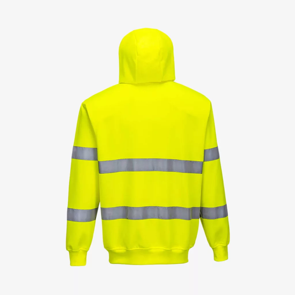 Strapabíró kevertszálas anyagból készülő Portwest munkavédelmi pulóver speciális Hi-Vis láthatósági elemekkel, kapucnis kialakítással. Kényelmes szabással, gumírozott derékkel és praktikus zsebekkel.