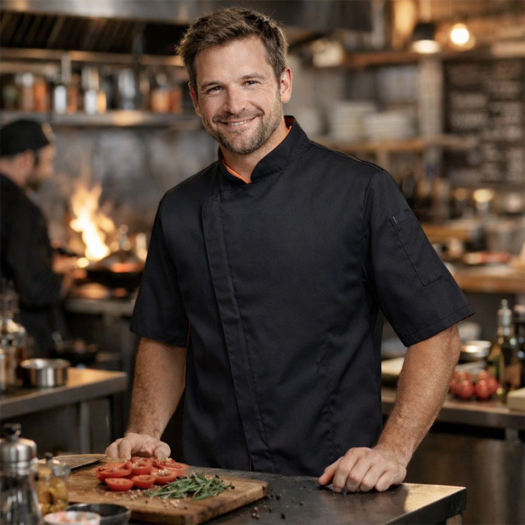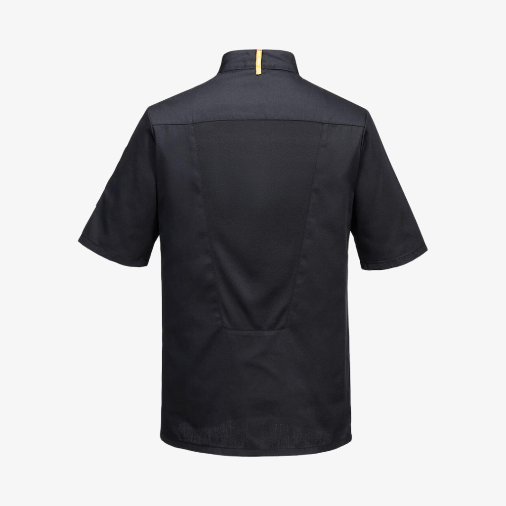 Kiemelkedől szellőzést biztosító MesAir paneles, kevertszálas anyagból készült Portwest rövid ujjú séfkabát. Slim fit szabással a magasfokú komfortérzet érdekében.
