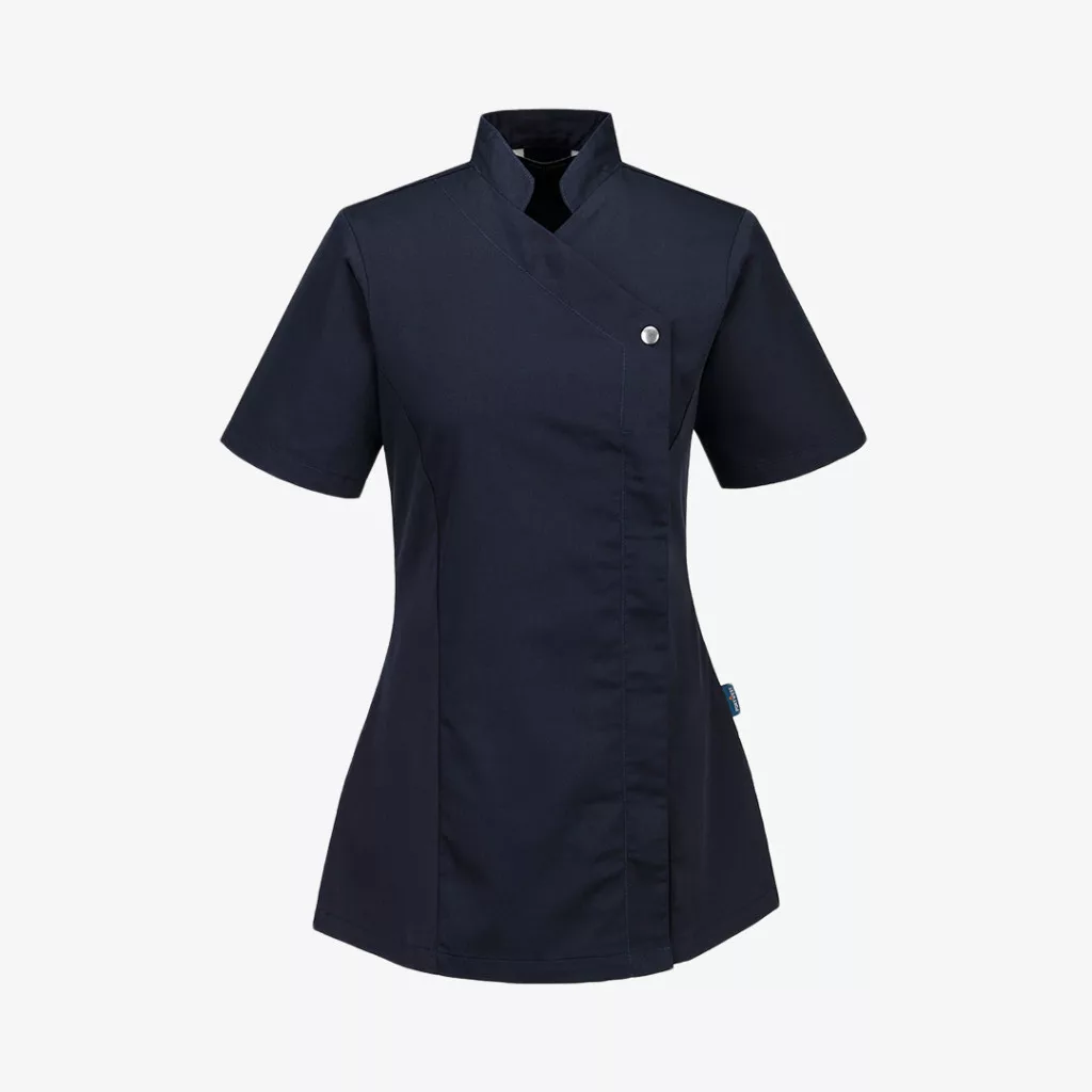 Stílusos, tartós kevertszálas anyagból készülő Portwest női orvosi tunika, rejtett cipzáras záródással. A kényelmet tovább fokozza az action hátsó kialakítás és az oldalsó szellőzőnyílások.